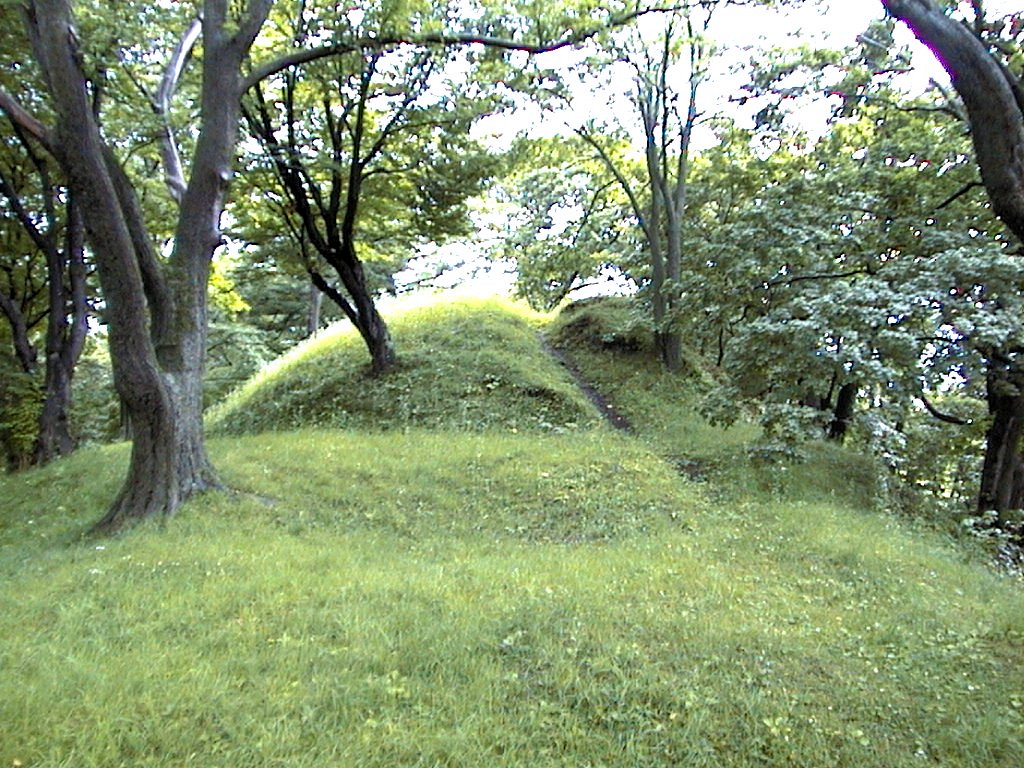 道東チャシ巡り第2弾最終日は、この桂ヶ岡チャシからスタートです。このチャシはそれほど大きなものではありませんが、御供山型をしていてとてもきれいな形をしています。前回見落とした外壕も確認しましたが、深さ2mもあるかなあ?という感じです。ちょうど桜の花が咲いていて、芝生の緑とタンポポの黄色と桜のピンク色の三色のコントラストがきれいでした(^^) (2002/5/6)