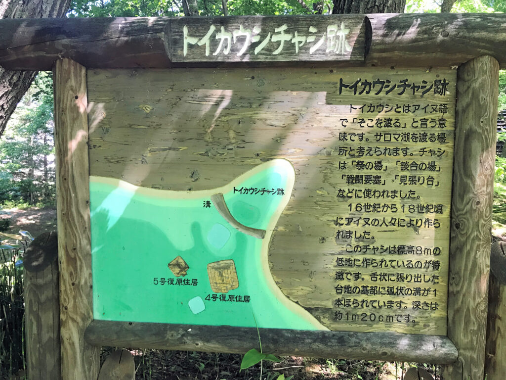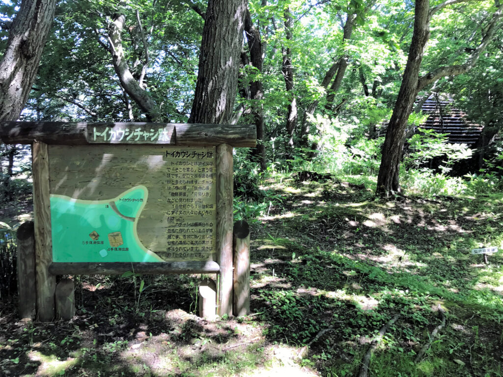 オホーツク旅行三日目、前日宿泊した宿のすぐ近くに「ところ遺跡の森」があったので、「ところ遺跡の館」を見学した後、すぐ近くにあるトイカウシチャシに行ってみる。説明板もあり、それによるとトイカウシとはアイヌ語で「そこを渡る」という意味で、サロマ湖を渡る場所と考えられるとのことでした。