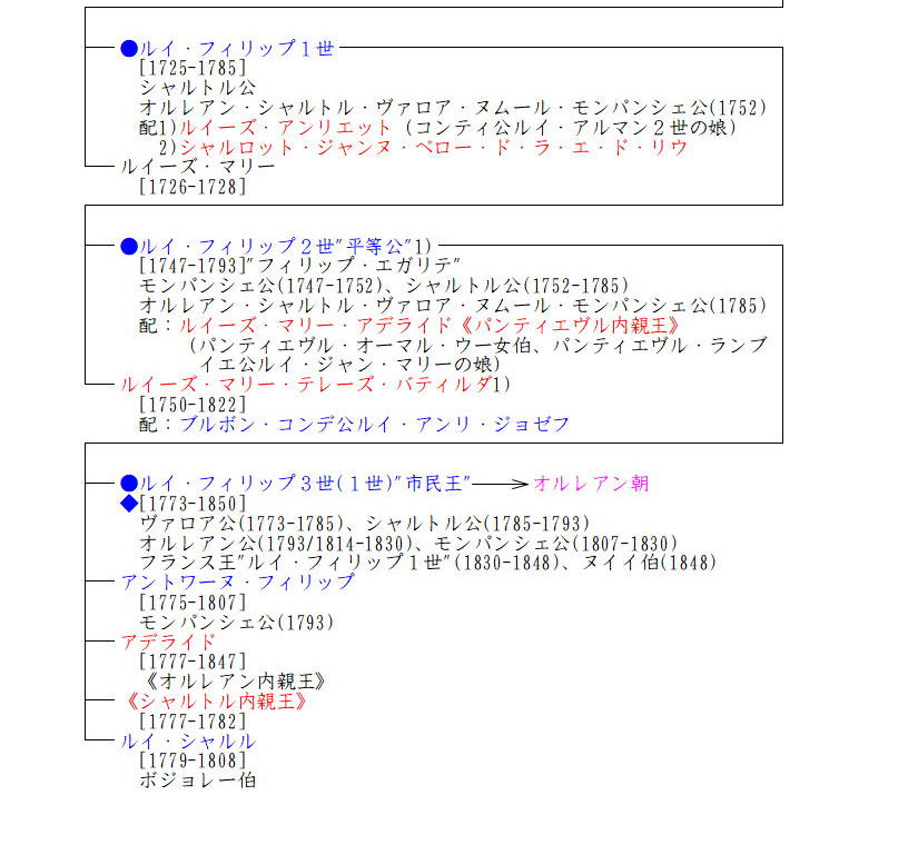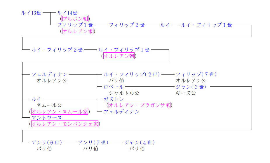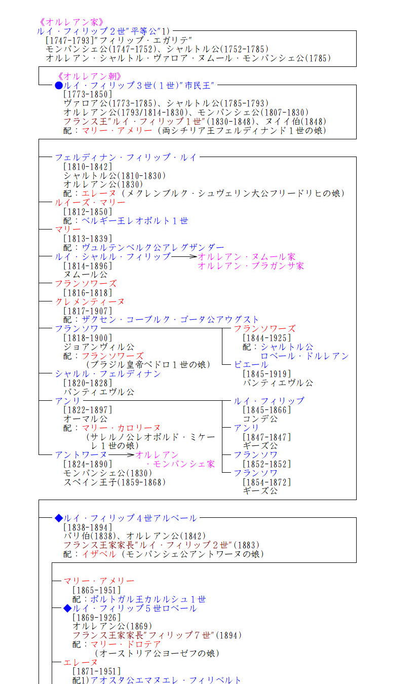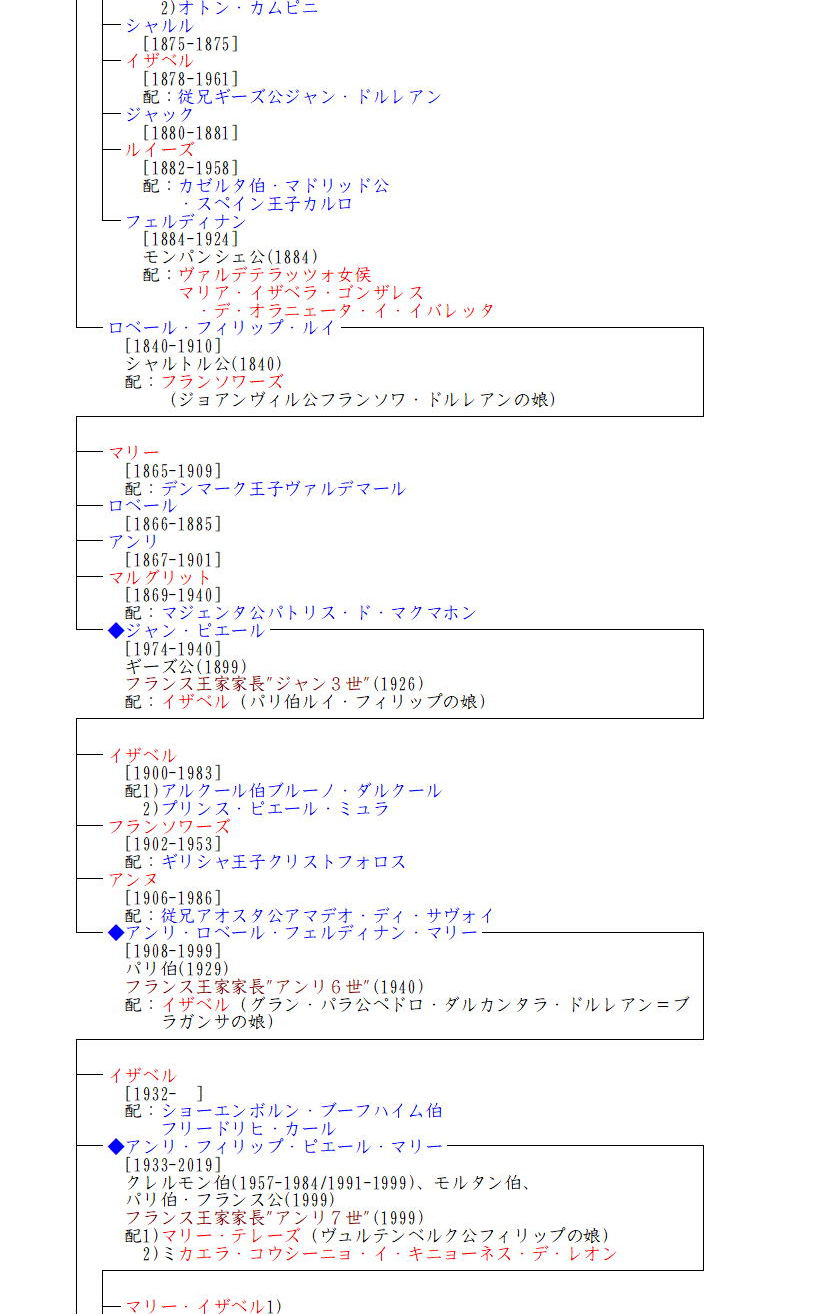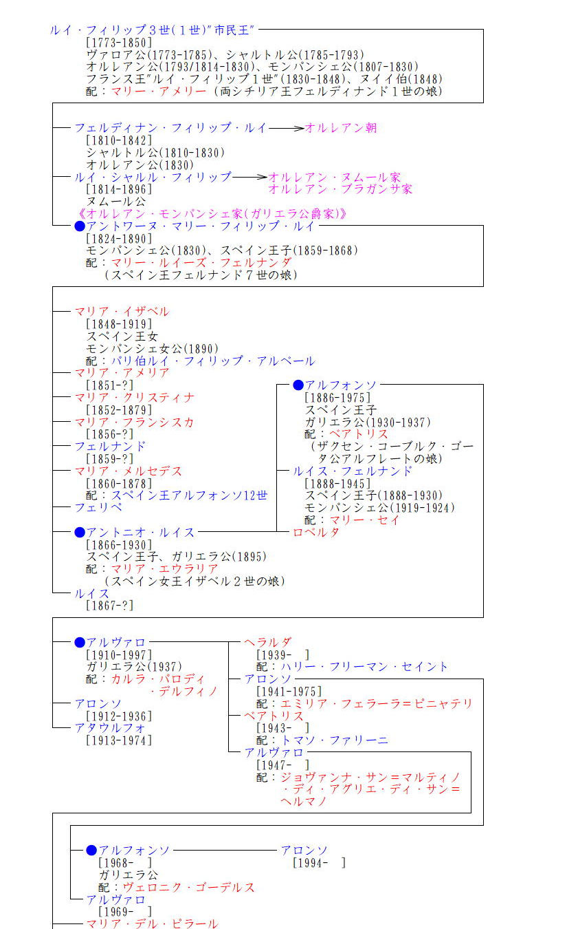 この系統についても系図しか資料がありませんが、フランス王ルイ・フィリップ1世の末子モンパンシェ公アントワーヌを祖とする系統です。