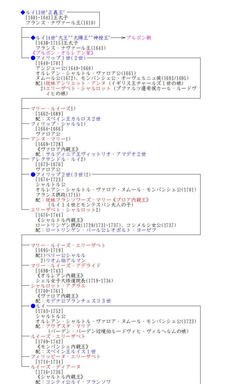 ※ ●はオルレアン公、◆はフランス王、配は配偶者、1) 2) 3)は結婚順です。