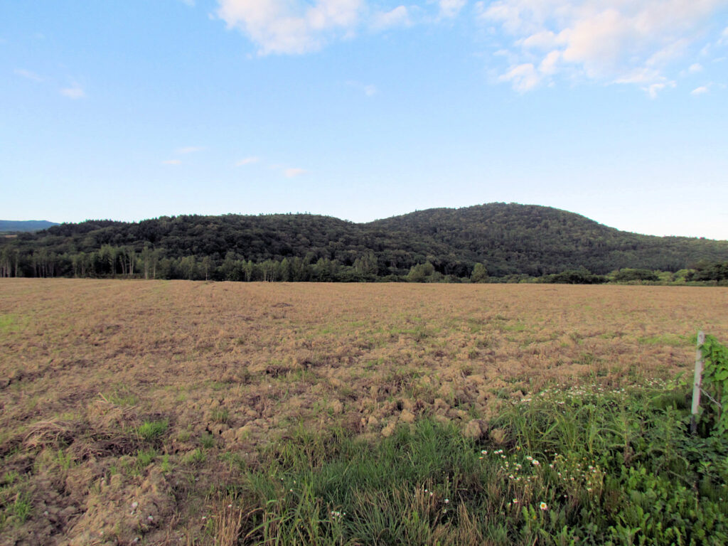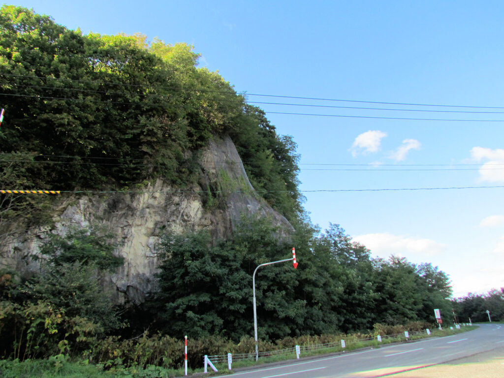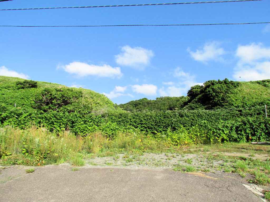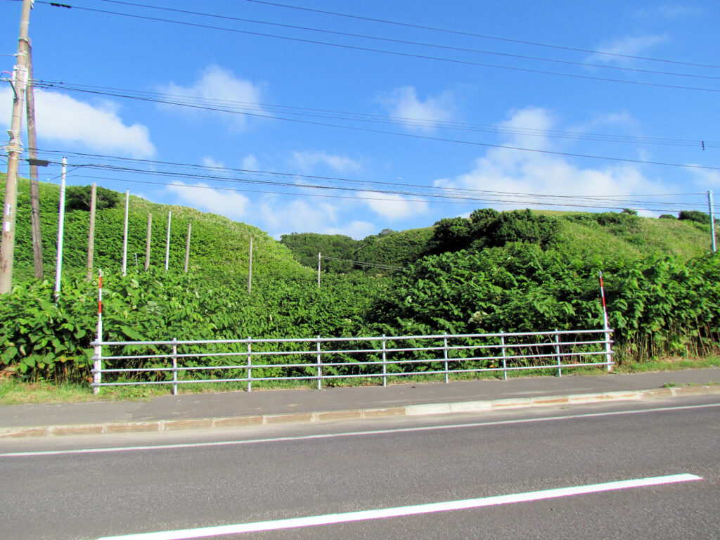 この日は浜益でさくらんぼ狩りをした後、北上して増毛へ向かいました。その際に、途中でここに久しぶりに寄ってみました。増毛の少し手前にある「大別苅防災センター」の裏から見える山が大別苅カムイトチャシですが、全く近づけないので、以前と同じような位置から写真を撮りました。