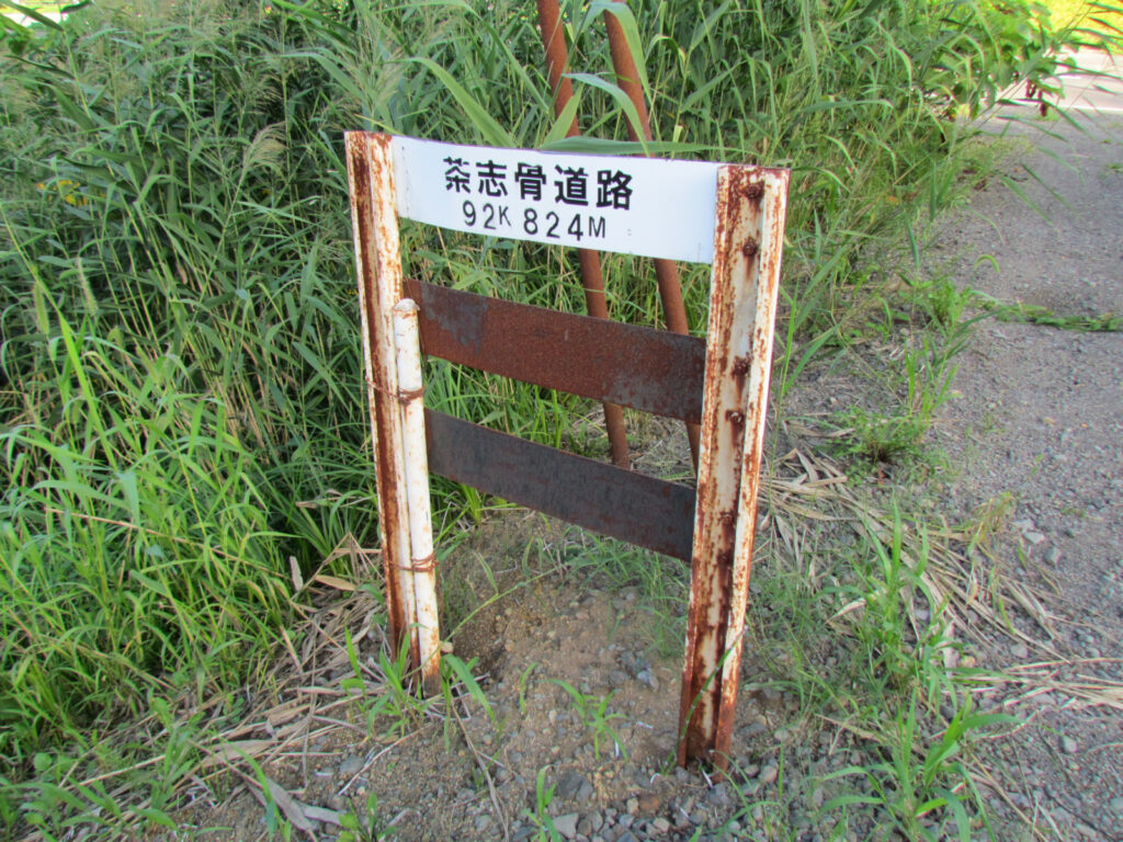 智恵文チャシはJR宗谷本線の線路のすぐ横にあり、いい感じの舌状台地のうえにあります。すぐ近くに踏切があり、その横に「茶志骨(チャシコツ=チャシ跡)道路」という看板がありましたので、場所は間違いないと思います。ただしその先の道路は藪で覆われて進めませんでした(--;) 線路沿いに進んで上に登れなくはなさそうでしたが、無理せず遠景を写真におさめて次に進みました。