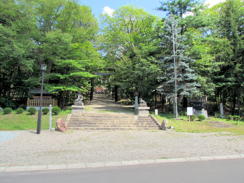 この日は夏休み最後の週末に、久しぶりに道の駅&チャシ巡りに行きました。まずは道央道を数時間走って士別剣淵ICでおり、士別のニセヲチャシへ向かいました。ニセヲチャシは士別神社の社殿の裏辺りにあるようで、神社に着いたら坂を上り社殿の裏の方のそれらしき藪をのぞいてみましたが、草が伸びていてよくわからず、たぶんこの辺だろうという藪の写真を撮ってみました(^^;)