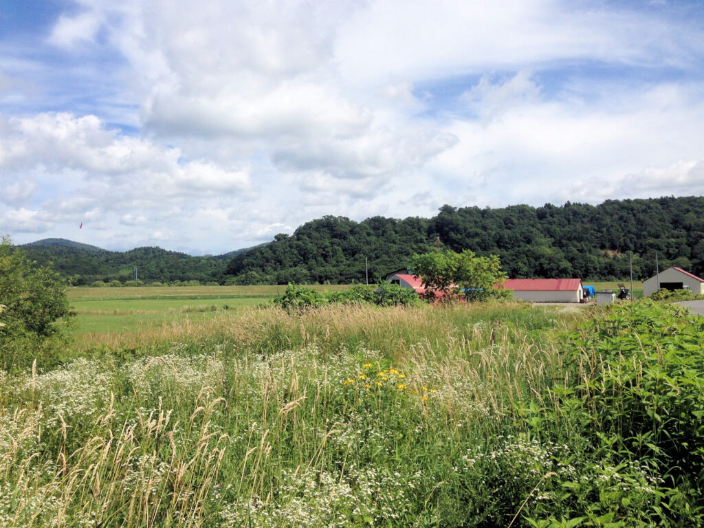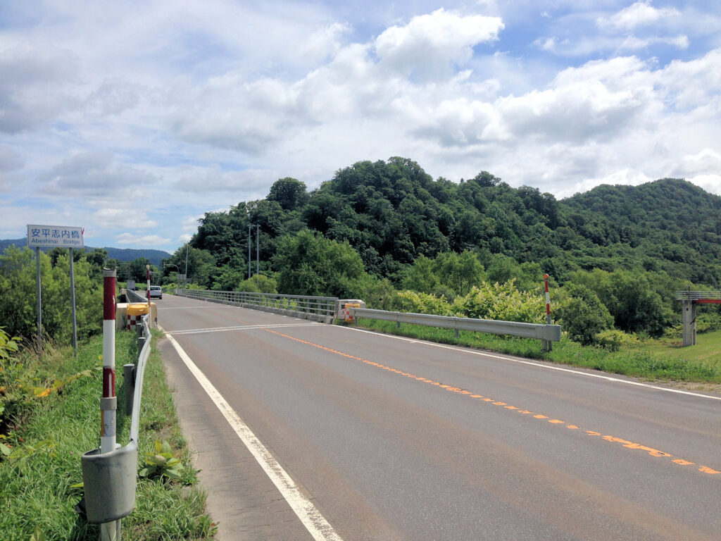 道北旅行の三日目、オフイチャシのあと道道118号線を南下し共和チャシへと向かいました。オフイチャシ付近から10kmほど南下した安平志内川の右岸段丘上にチャシがあります。とはいえ現地に行っても草が伸びていて、位置を確認し写真を撮ったのみでした。