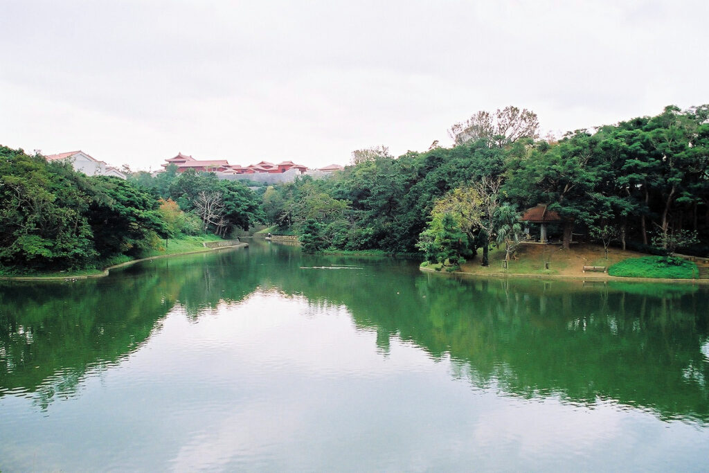 玉陵のあと、県立博物館を見学し、そしてその近くにある「潭亭」という八重山料理の店で昼食を撮りました。その県立博物館や潭亭の前に広がる大きな池が龍潭です。