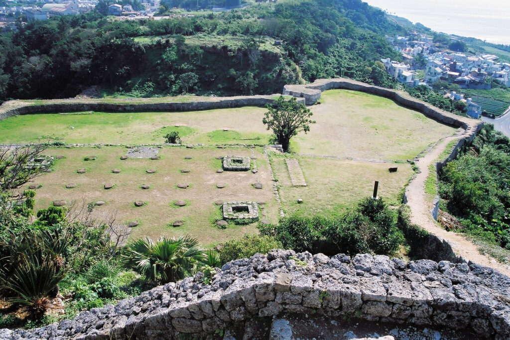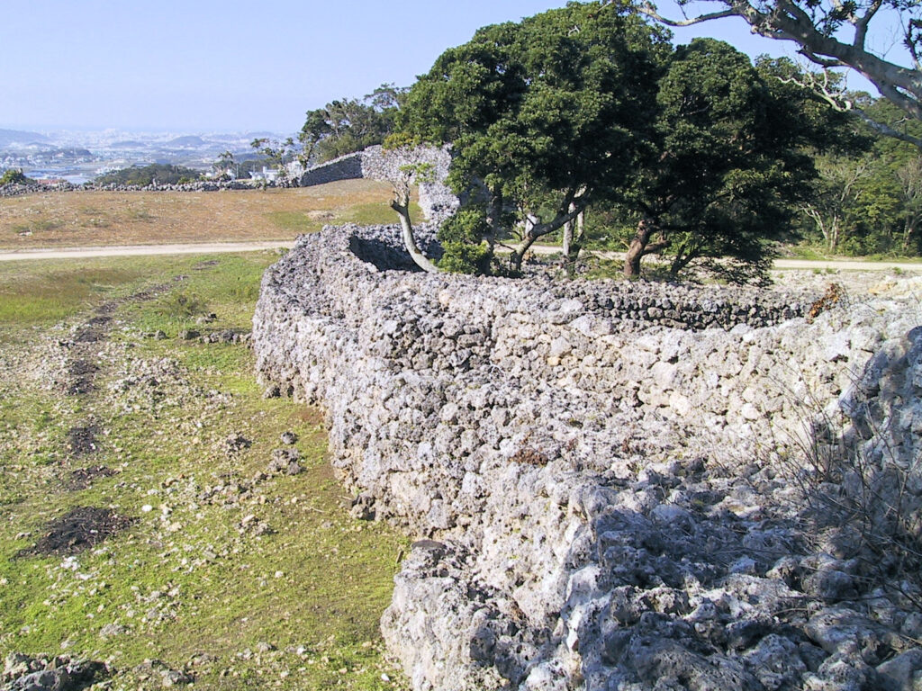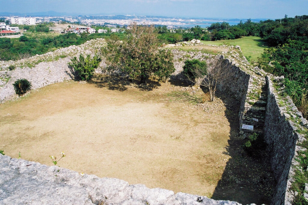 太平洋戦争末期には日本軍の高射砲陣地となり、戦後も米軍基地となりましたが、昭和47年(1972)沖縄の本土復帰に伴い国指定史跡となり、昭和49年(1974)には米軍基地も移転しました。