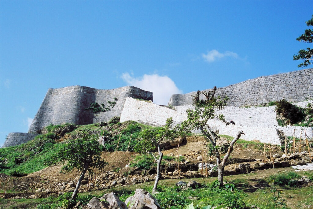 現在一番下の四の郭の辺りは発掘調査をしているようですが、三の郭への入口のあたりの石段は復元されたばかりのようでまだ石が白く周りと馴染んでいませんでした。二の郭・一の郭には拝所があり、この辺がグスクがただの城郭ではないことを感じさせます。