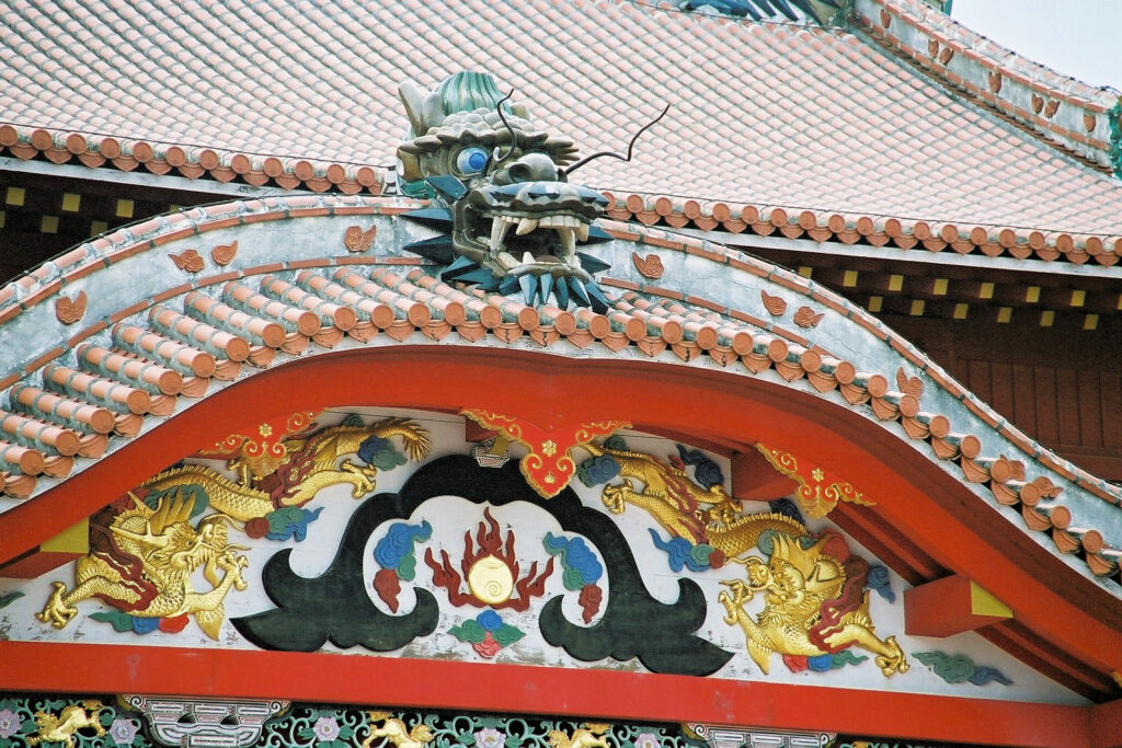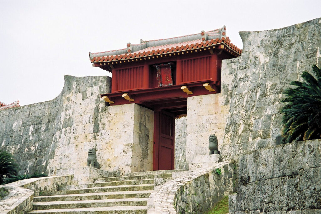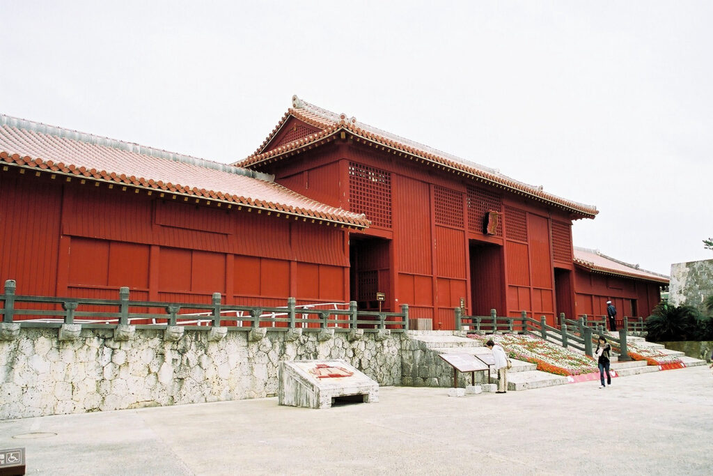 首里城は幕末の弘化3年(1846)に改築されて以来、修理されることなく大正時代に至り、腐朽荒廃がひどいため廃棄されることとなりましたが、大正12年(1923)伊藤忠太博士の尽力により特別保護建造物に指定されて改築、以後沖縄神社の拝殿として使用されました。しかし太平洋戦争末期の沖縄戦でこの見事なグスクもほとんど壊滅し、昭和25年(1950)首里城跡地に琉球大学が創設されました。そして昭和47年(1972)の本土復帰後、琉球大学が移転した首里城跡地が国営公園区域とされ、順次復元修築が進み平成4年(1992)には一部開園しました。そして平成12年(2000)、首里城跡は沖縄県内8ヵ所の資産とともに世界遺産に登録されました。