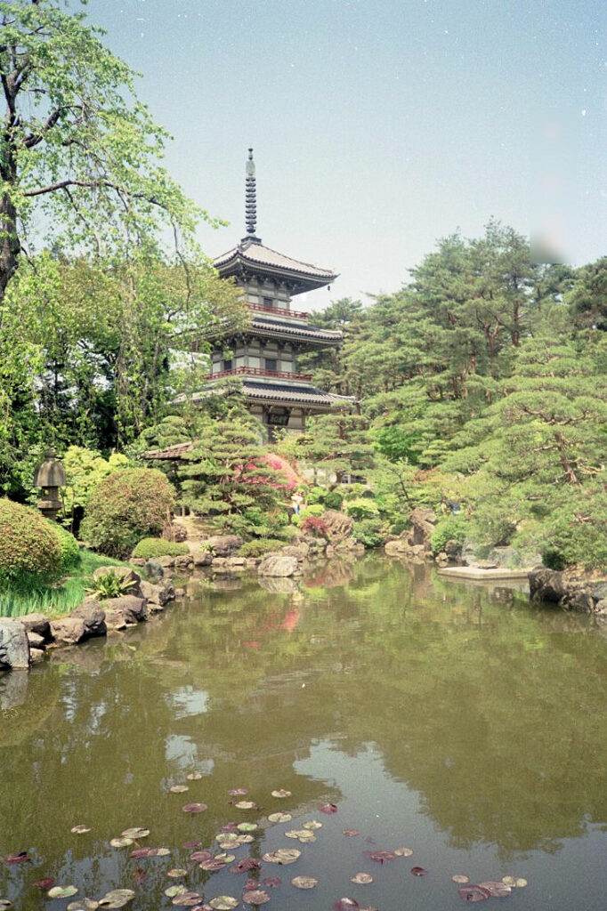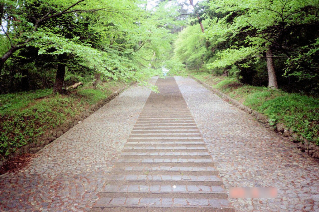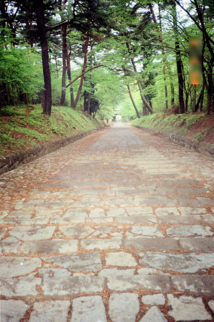 この瑞鳳殿は2代藩主忠宗が父政宗の廟所として寛永13年(1636)に着工、翌年に完成したものですが、華麗な桃山風の建造物で国宝に指定されていました。しかし昭和20年(1945)の仙台空襲で消失し、その後昭和54年(1979)に再建されました。2代忠宗の廟所・感仙殿、3代綱宗の廟所・善応殿も続いて再建され、かつての華麗な姿を再び見せています。(1989/5/3)