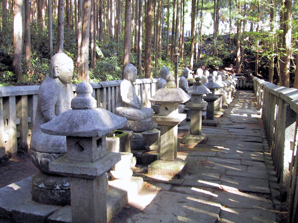片倉家廟所は白石市中心部から米沢に抜ける国道113号線に進むとすぐ左側に見えてきます。駐車場に車を置き、坂道を登っていくと鬱蒼とした森に囲まれた片倉家廟所が見えてきました。正面のすぐ脇には初代景綱に殉死した家臣六人の墓や明治年間に片倉家が北海道移住の際に建てた片倉小十郎惣家中先祖代々の供養塔があります。この廟所内には真っ正面にある初代景綱の墓をはじめとして十代宗景まで片倉家歴代の墓がありますが、宗景以外は阿弥陀如来像をその墓標としています。