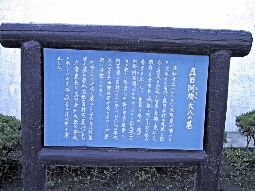 真田阿梅・大八はあの真田幸村(信繁)の遺児ですが、大坂の陣の際に幸村より片倉小十郎重長(景綱の長男)に託され、以後片倉家の庇護を受けながら成長しました。そして阿梅は重長の後室に、大八は片倉四郎兵衛守信と名乗って仙台藩に召し抱えられました。(大八の子孫はのち真田姓に復す)