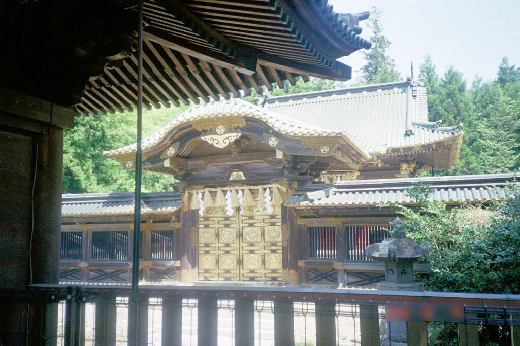 その奥には本殿がありますが、私が行った時には(今もそうなのかもそれませんが)塀で囲まれていて近づけませんでした。ですが、塀越しに見える唐門は金箔で華麗に装飾したもので、とても見応えがありました。