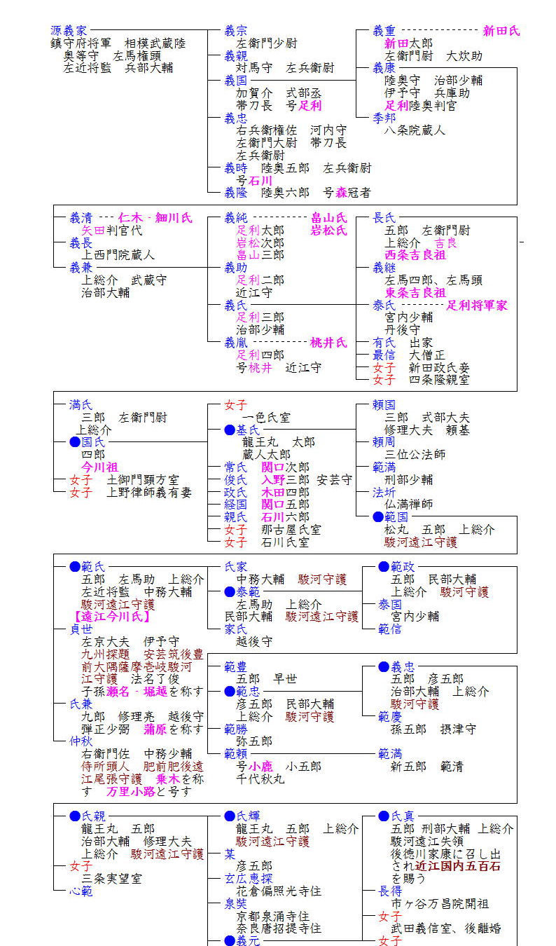 今川家は足利義氏の子である吉良長氏の次男国氏が三河国幡豆郡今川庄(愛知県西尾市)に居住し、今川氏を名乗ったのに始まります。