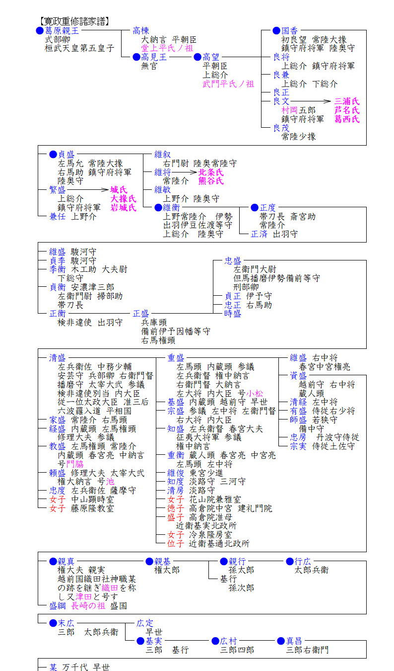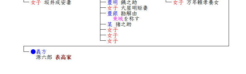 一方頼次の弟頼元の系統も千石を知行し(後分知して七百石となる)、孫頼長の代には高家に列し、幕末の修理大夫頼永は高家肝煎を勤め、維新まで続きました。
