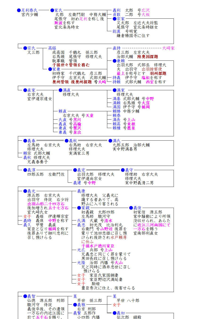 一方、畠山家を継いだ義純と妻北条氏との間に生まれた泰国、そして時国は足利本宗家からは一応独立した御家人としての地位を与えられていたようです。南北朝期には高国が足利軍の一翼を担い、その子国氏が奥州探題となり、子孫は二本松城主として戦国期に至ります。