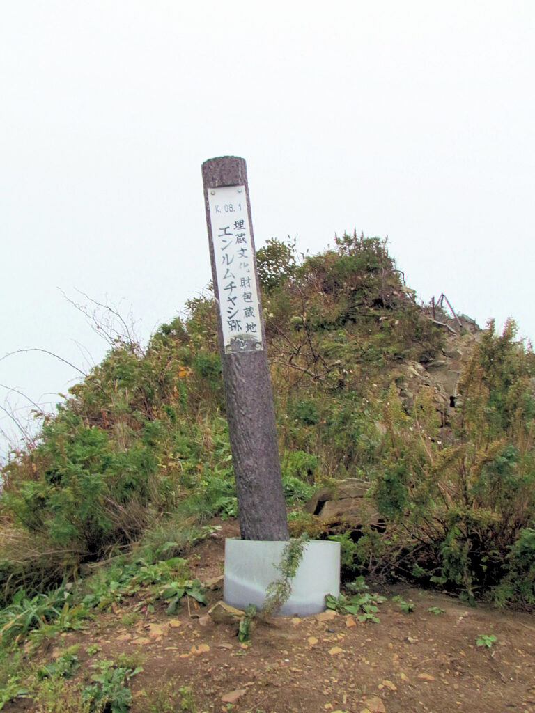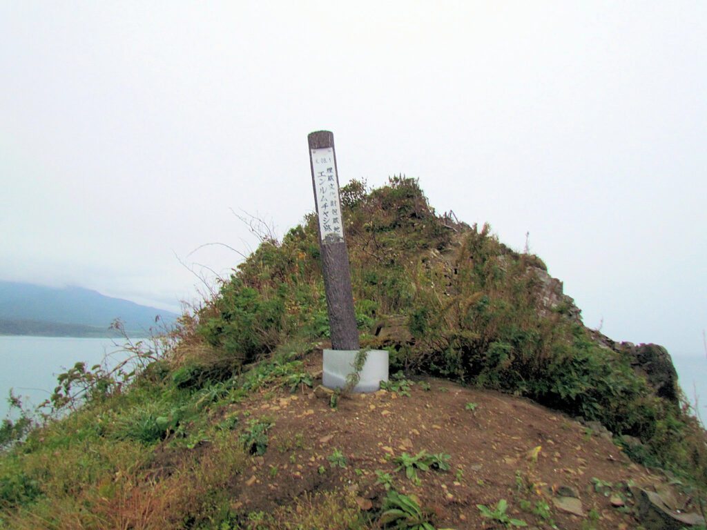 この日は日高方面のチャシ・ダム巡りに行きました。様似ダムの次はいよいよ最後の目的地・エンルムチャシへ向かいました。キムンチャシ様似にあるエンルム岬上にあります。急な坂を上り、その先の急な階段を登って頂上に到達すると「埋蔵文化財包蔵地 エンルムチャシ跡」という標柱があります。壕等の遺構は現存しないようですが、自然崩壊か?とも言われています。また発掘調査では石器や前北式土器が出土しているようです。