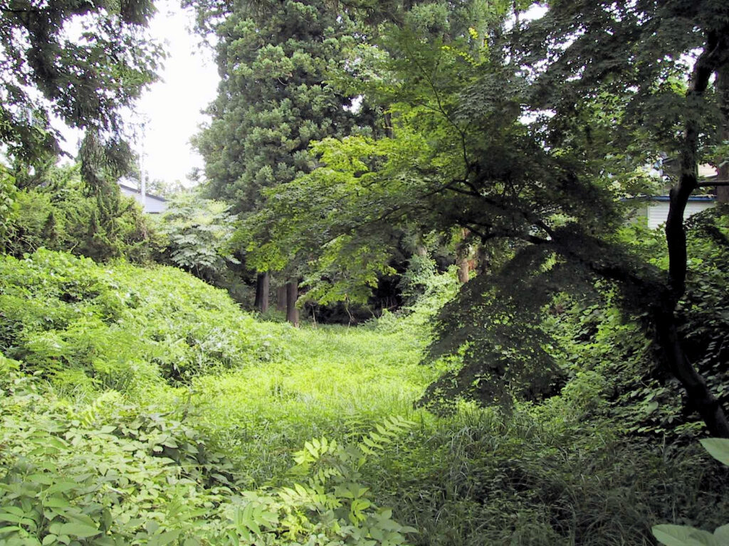 そこから北の方に歩いていくと、その他にも空堀が2~3本あり、安倍館遺跡の説明板もありました。それによると、この安倍館は中心部の本丸を含む7つの郭に別れていたそうです。現在は郭はすっかり住宅街になっていますが、郭と郭を仕切る空堀はしっかりと残っており、なかなか見応えがあります。