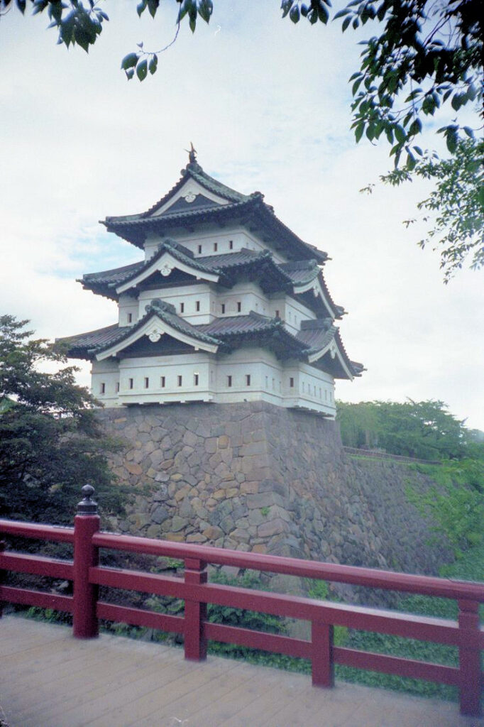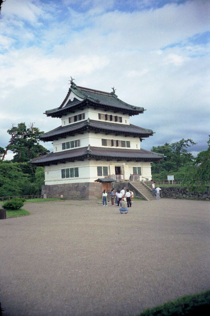 弘前城を訪城したのは91年の夏、大学時代の友人と一緒でした。かなり前のことですので、細かなことは忘れてしまいましたが、大手門をはじめとした現存建築や天守の美しさが印象に残っています。この頃は城というと天守閣程度の意識しかありませんでしたので、撮った写真を見ても天守+城門をいくつかという感じで、この他にも三重櫓があったはずですが、それは全く記憶に残っていません(^^;) そのうちに再訪しなくちゃ行けませんね。(1991/8/9)