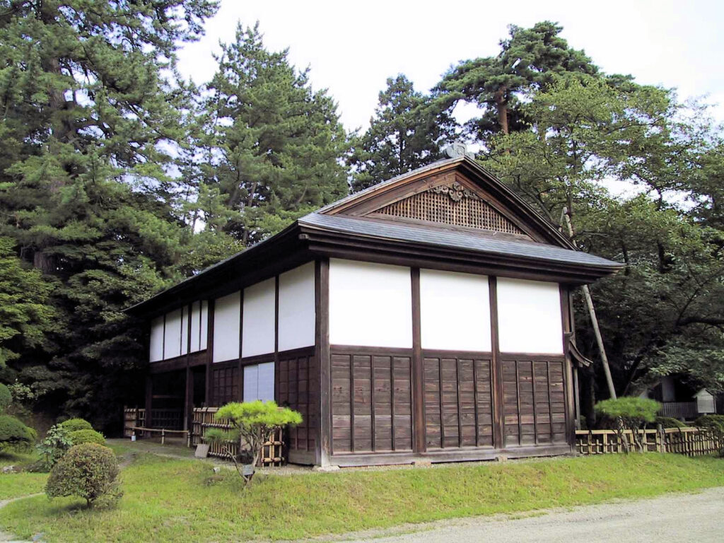 その横には唯一の現存建築物である御物頭御番所がありました。これは唯一現存する藩政時代の役所建物で、宝暦8年(1758)から安永7年(1778)の間に建築されたものと推定されています。久保田城内の二ノ門(長坂門)の開閉と城下の警備、火災消火を担当していた物頭の詰め所で、秋田市指定文化財になっています。