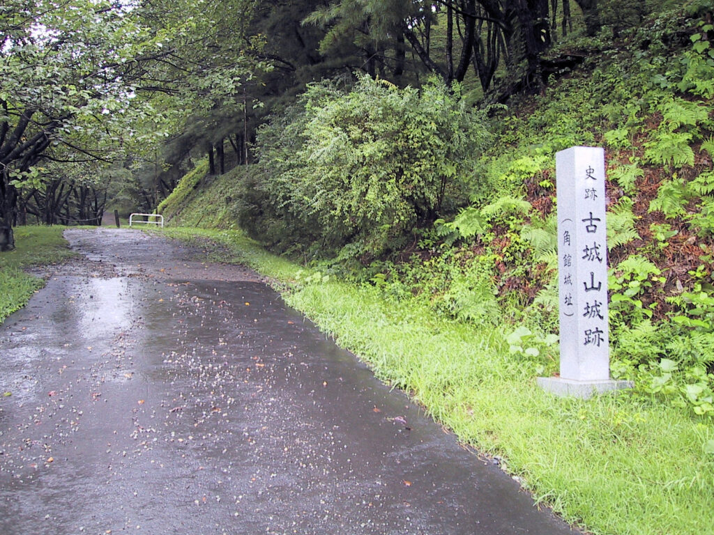 角館に着くと雨は少し小降りにはなってましたが、まだぽつぽつと降ってました。武家屋敷群に行く前に角館城に行って見ることにし、地図に従い古城山を登りました。少し登ると駐車場があり、その近くに「史跡・古城山城跡(角館城趾)」の碑を発見したので、車を停め少し登ってみることにしました。