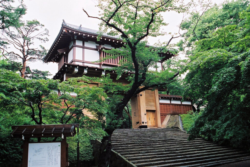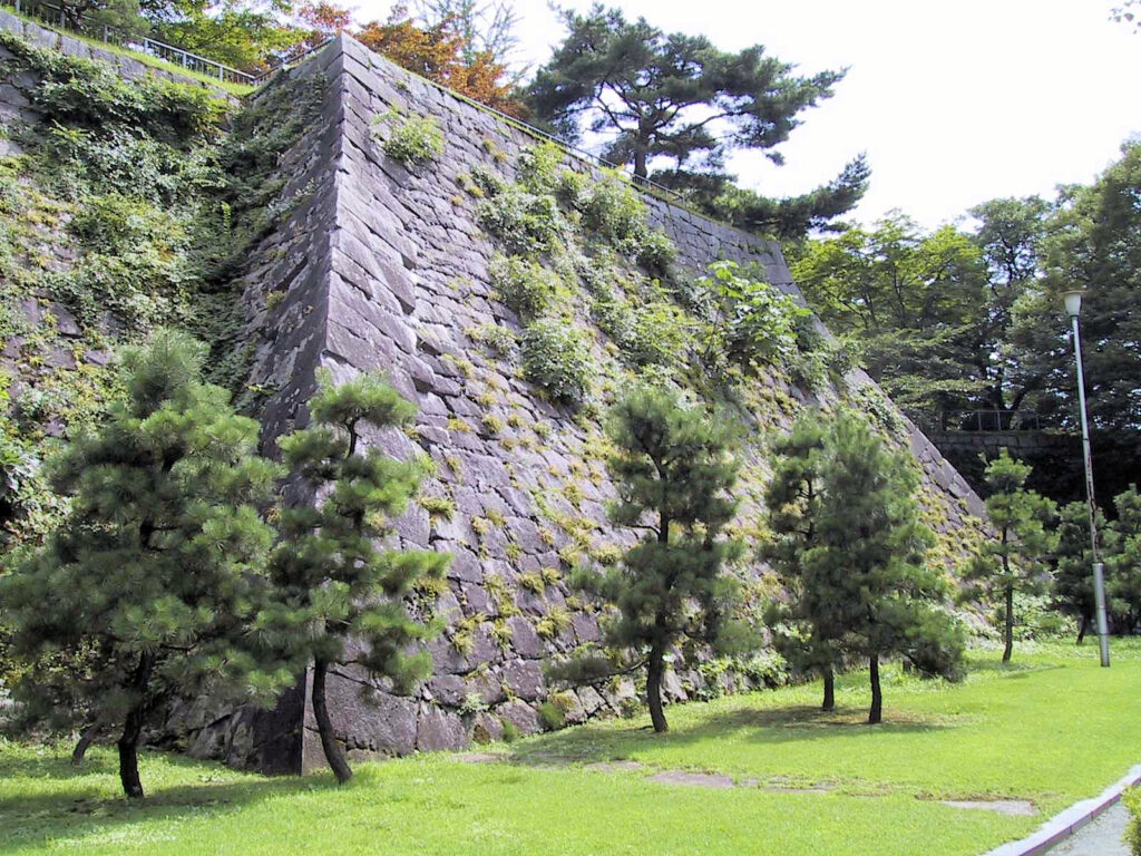 この城は「盛り上がり栄える岡」との願いをこめて盛岡城と改称され、明治維新まで南部氏の居城として続きました。当初築かれた三層の天守は火災で炎上し、延宝元年(1673)に再建されましたが、明治6年には天守を含めた建物は破却され、現在は岩手公園となり石垣と水堀が残っています。