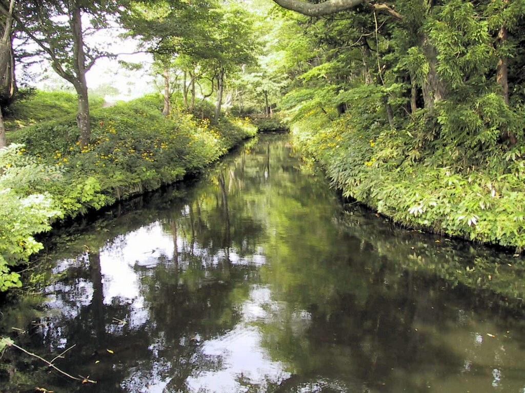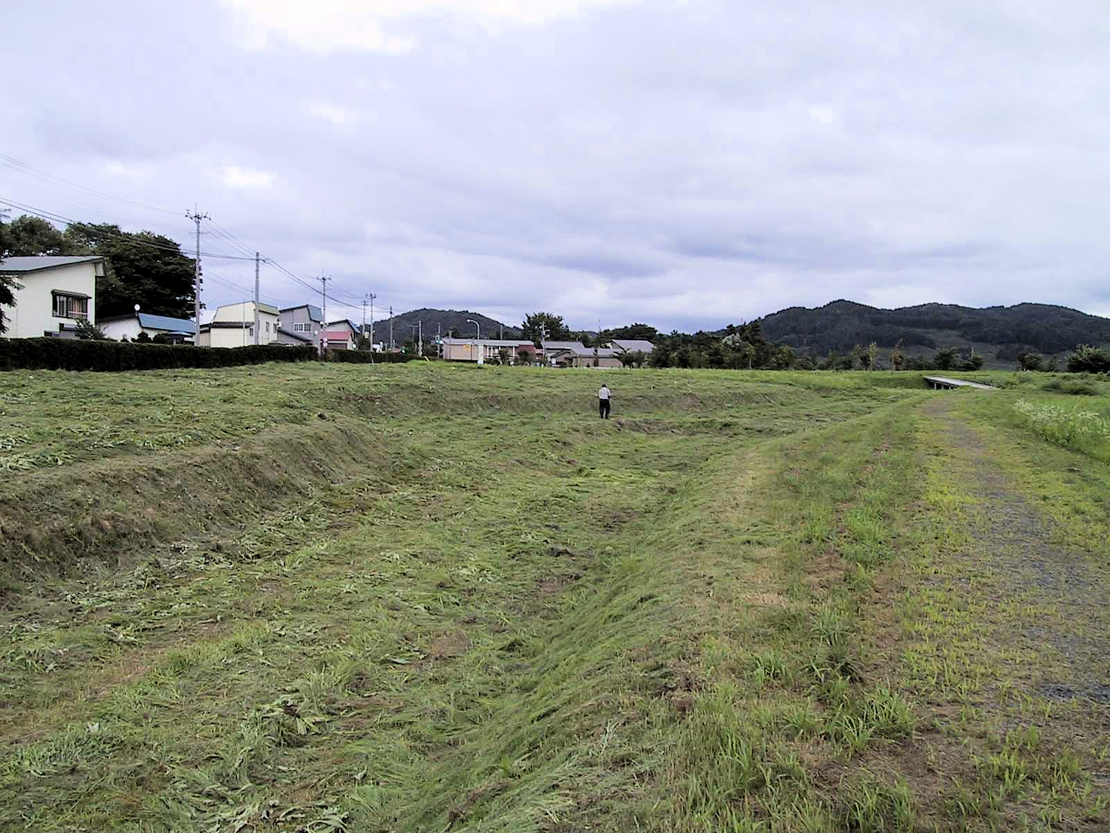 西館から内館に登る前に検校館はどうかと思い浪岡川沿いに西に進むと、西館と検校館の間の堀跡らしきところがありましたが、ここも草が伸びていて...(以下略(^^;))