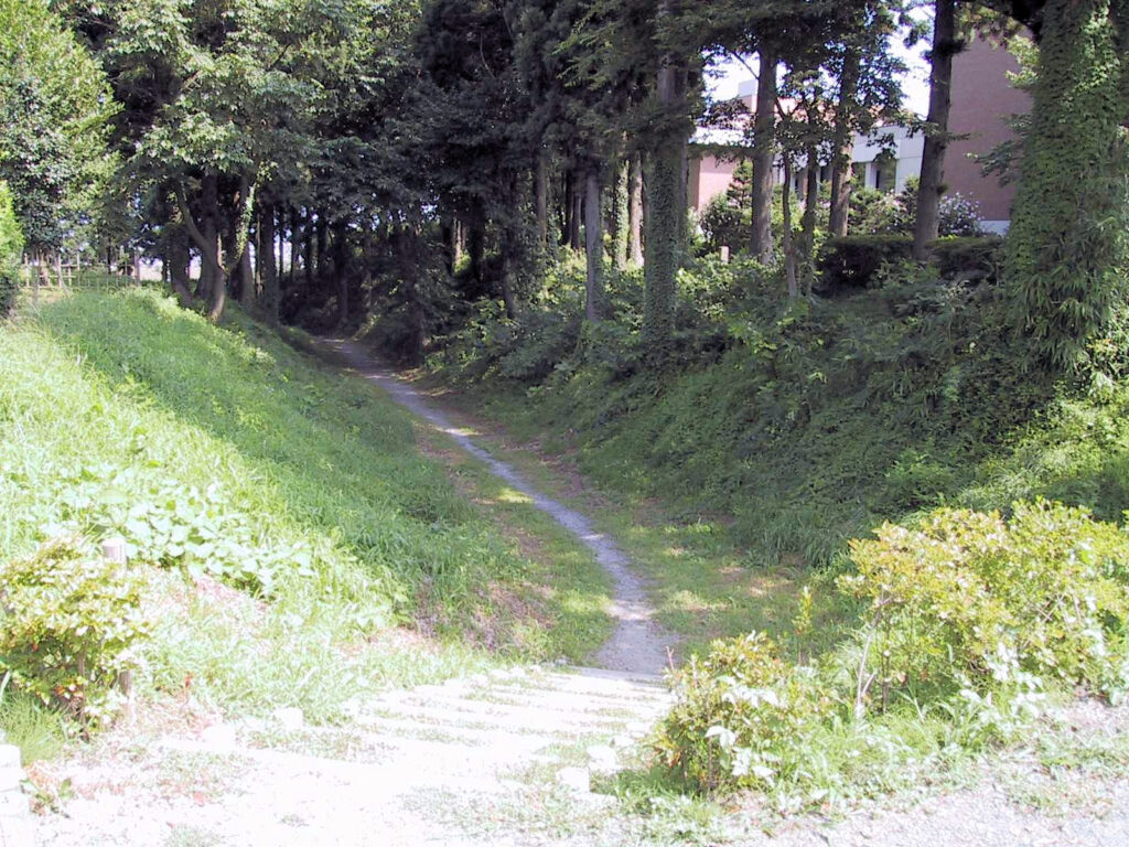 最後に駐車場から道路を挟んで向こう側に三番堀の跡が見えますが、そちら側はすっかり住宅街になっているので土塁部分ははっきりわかりますが、堀の部分は浅くなっています、また中館にあった模型ではこの三番堀は二重になっていましたが、見る限りでは堀らしきものは一本しかなかったので、もう一本の方は消滅してしまったのかもしれません。