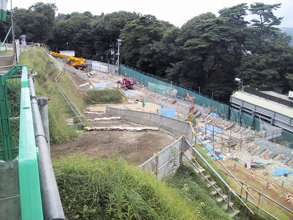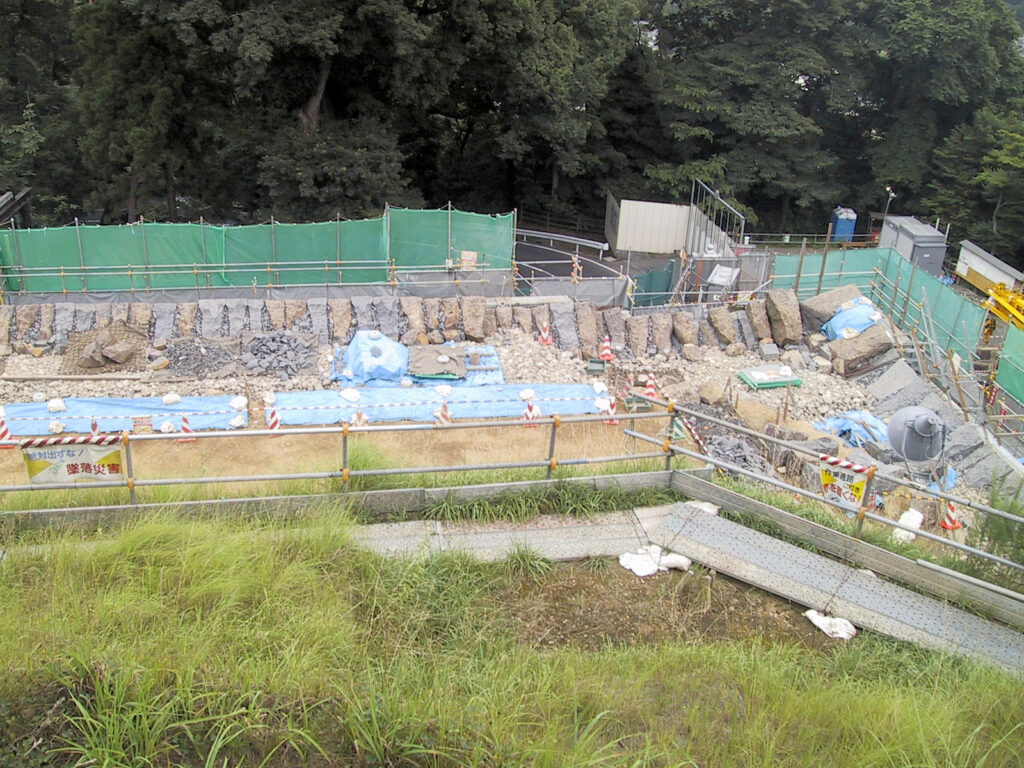 2年ぶりの訪城は嫁さんと一緒です(^^;) 朝、仙台のホテルを出発するとまずは青葉城跡へ。ここに来るのは2年ぶりですが、まだまだ工事は続いてますね。政宗公の銅像の前で写真を撮ったりしたあと、見るとその裏の方で工事の様子を上から見ることができるようになっていました。見ると、石垣を積んでいる途中の様子が見ることができました。また、政宗公の銅像の近くにあるプレハブの建物の中では、工事の様子をパネルなどで展示していました。