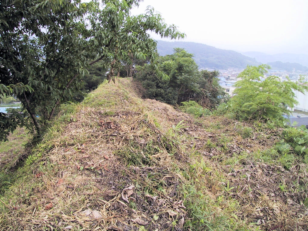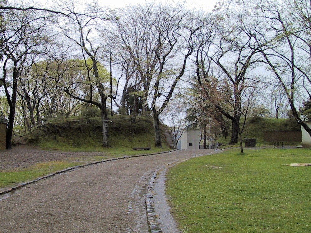 この日は午前中は雨がしとしとと降っていたので、大手口跡から少し上ってみましたが、雨で草がぬれだんだんと靴の中に浸みてきましたし、本丸へ上がる道がかなり急になっていましたので、登るのをそこでやめてしまいましたが、頂上のあの建物をのぞけば山城の雰囲気をよく残していると思います。