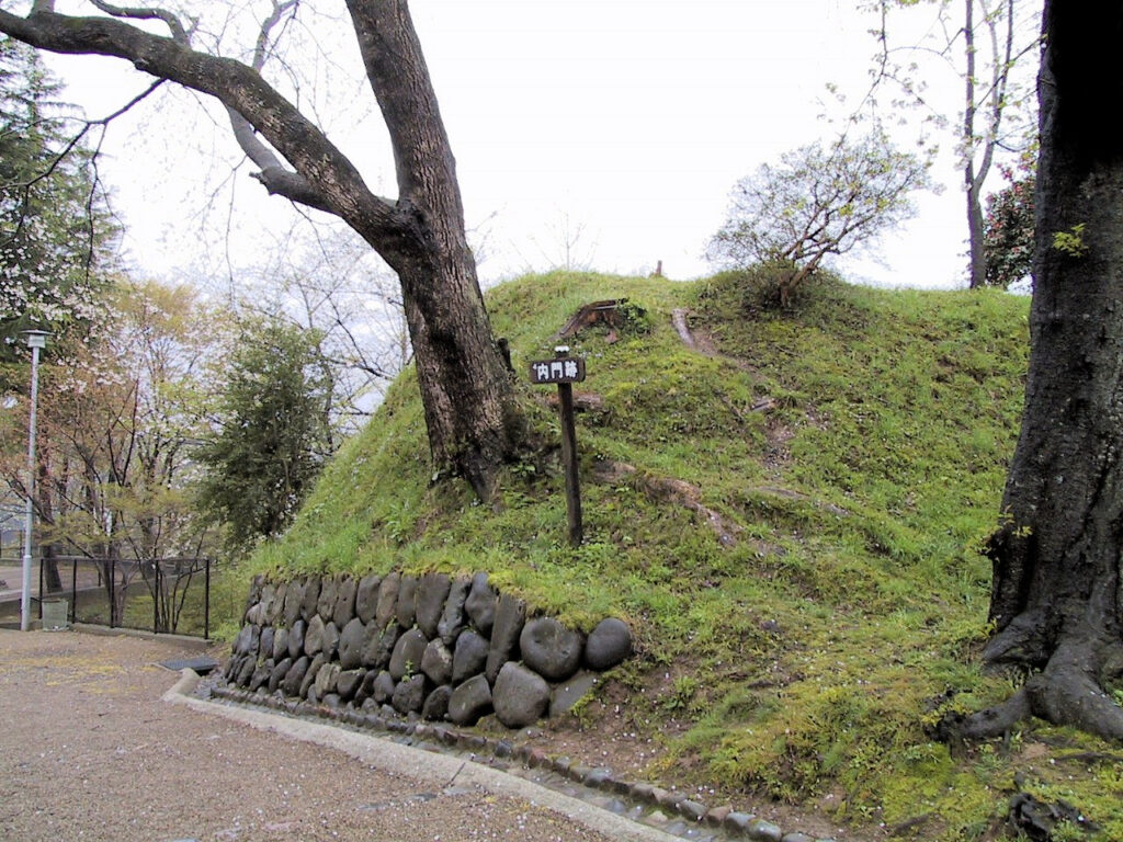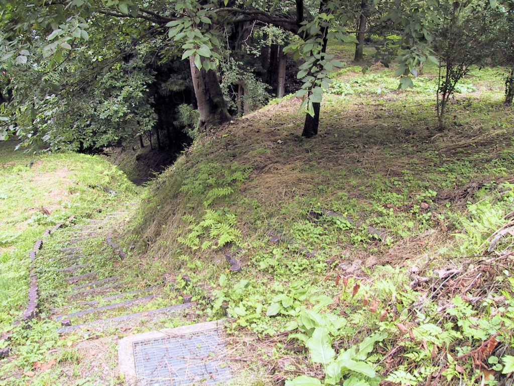 そして再び本丸跡の方に登ると伊達政宗の像がありましたが、これはもとは仙台城にあったもののようです。そのすぐ近くに内門跡があり、ここは門跡をはさんで両側に土塁が残っていました。そこで再び下に降り今度は左の方に進んでいくと途中に空堀跡らしきものがありました。そのあとぐるっと回って元の場所に戻り、有備館の方へ行ったのですが、あとからデジカメで撮った案内図を見直してみると物見跡や堀切跡などいくつか見落としたものがあったようです(^^;)