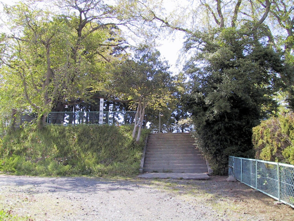 そこからは歩いて、先ほど見当を付けた台地上に登ってみたら個人の住宅でしたので、その辺をぐるっと回ってみましたら、公園らしきところがあり、おじいさんがゲートボールの練習をしていました(^^;) それでその公園を見渡すと一段高いところに「鵜ヶ崎城跡」の標柱を発見しました。