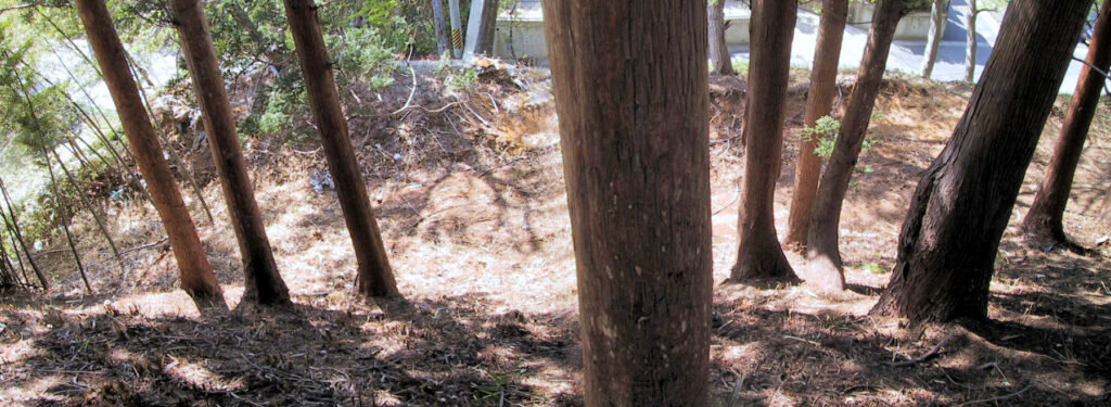 そのあともう一度亘理神社側に戻り、道路を挟んだ反対側の台地上を見てみたら土塁らしき物が見え、遺構が少し残っているようでした。いずれにしてもちょっと情けない思いがしました。