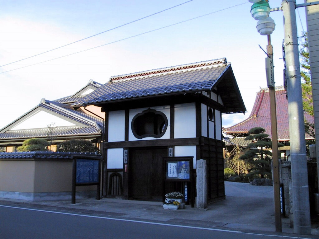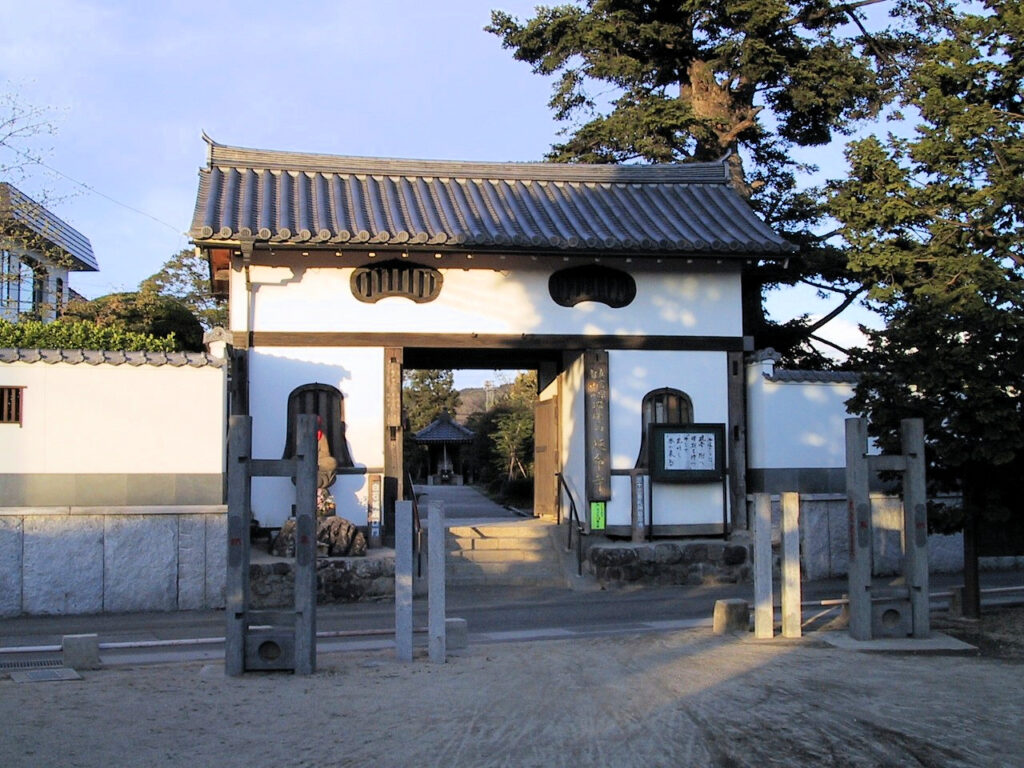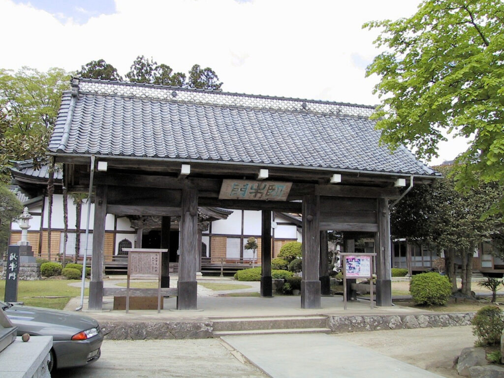 次に城の表門が移築されているという長泉寺へと向かいました。ここは石川氏の菩提寺で、寺の中門として移転され臥牛門の扁額がかかっています。はじめは石川家の隠居所の門として立てられたのですが、のちに本館が火災に遭い館門が焼失したため、移築したものだそうで、角田高校が開校の際に解体されていたものを、有志の手でこの寺の中門として移築したとのことです。