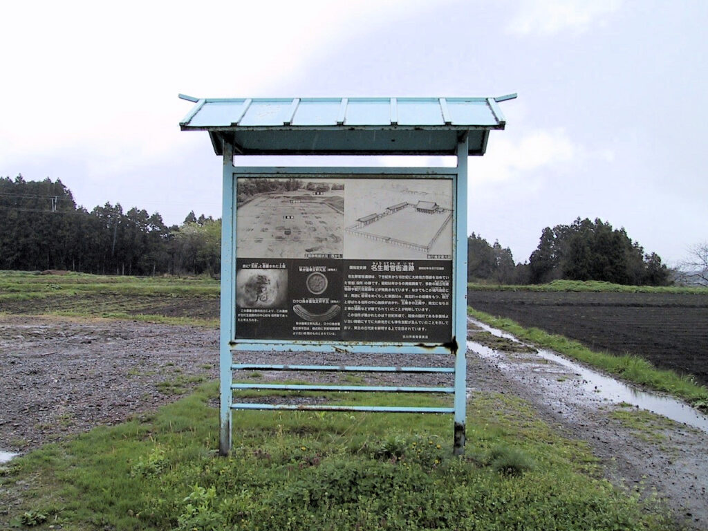 このあたりは以前から古代の瓦が出土することから玉造柵跡ではないかと比定されていましたが、昭和55年(1980)からの発掘調査で多数の掘立柱建物跡、竪穴住居跡等が確認され、7世紀末・8世紀初頭の官衙跡と考えられています。その一画に、「名生館官衙遺跡」という案内板も建っていましたが、周囲ははっきり言ってただの田畑でした(^^;)