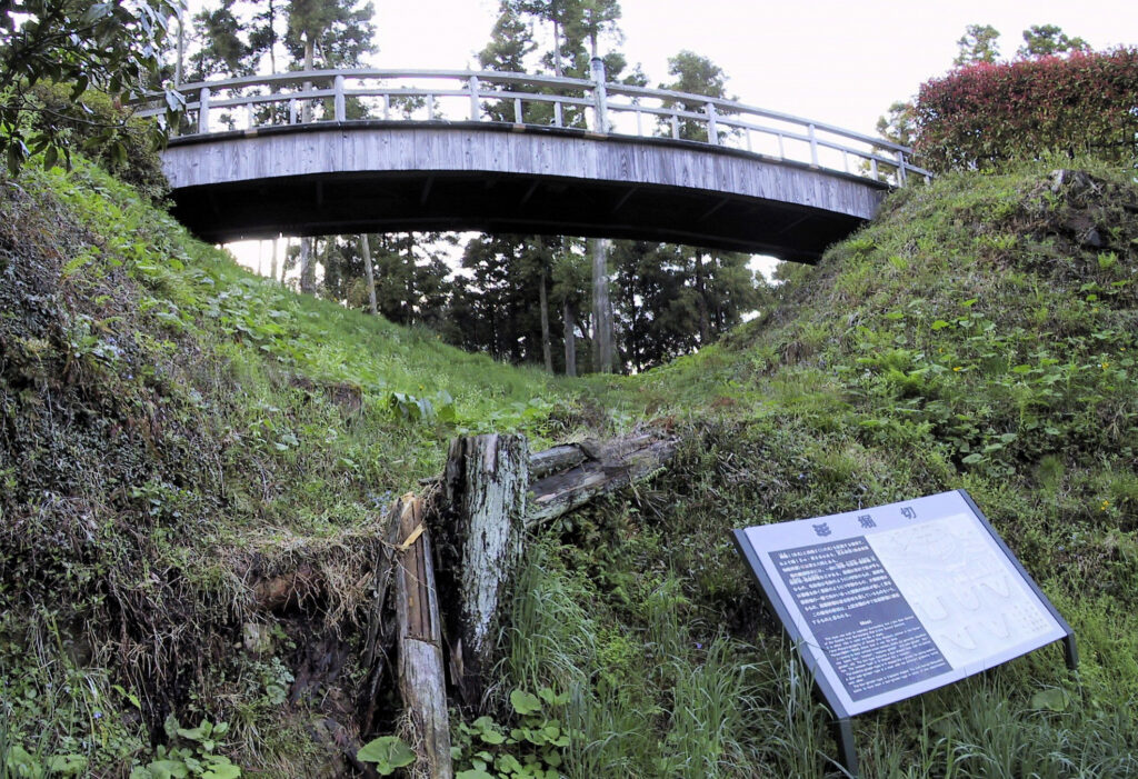 【主な遺構】本丸・土塁・門・空堀・石垣、大手門・三階櫓(復元)
