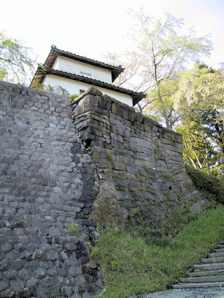 以前来た時には、本丸跡の神社と騎馬像、それに大手門の復元隅櫓ぐらいしか見ていませんでしたが、意外と遺構が残っているなあと感じました。(清水門跡の石垣が一番良かったです) (2000/5/4)