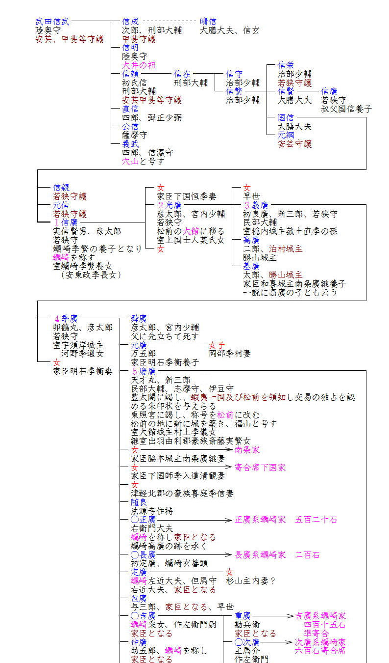 ・『河野氏末松前家系譜録』『武田家譜』『松前家(蠣崎氏)之系圖』