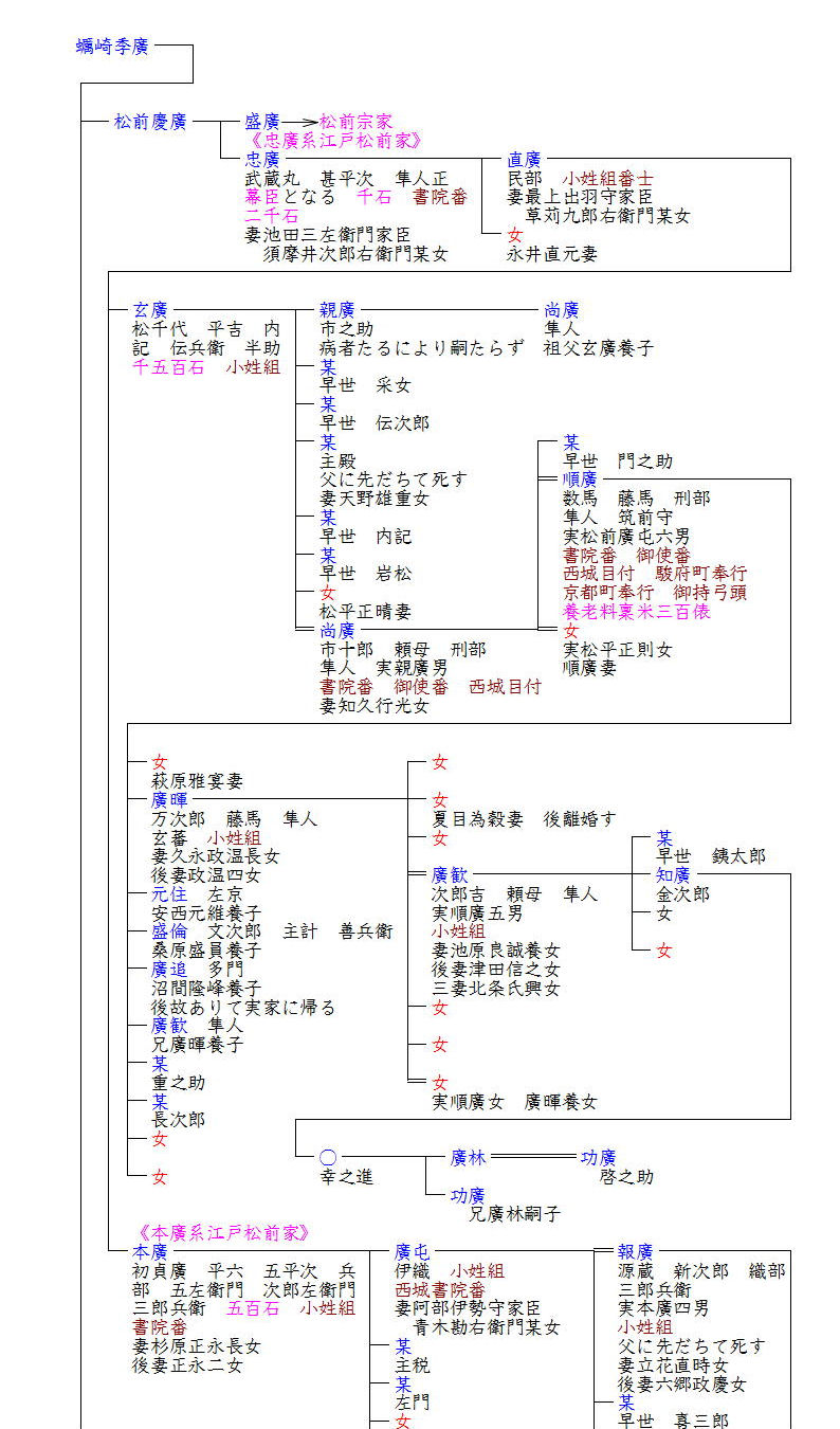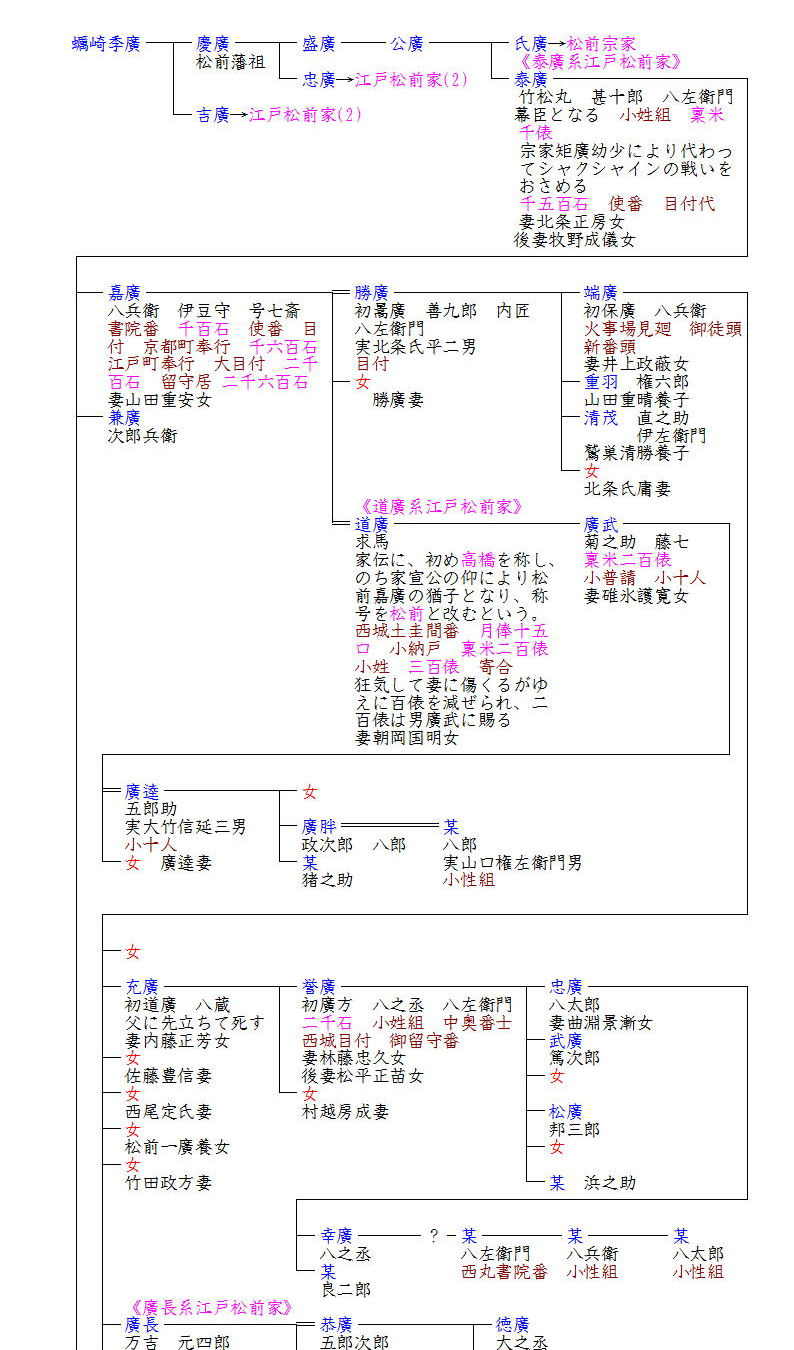 ※松前宗家の系図については松前倫廣さんから情報をいただきました。ありがとうございます。