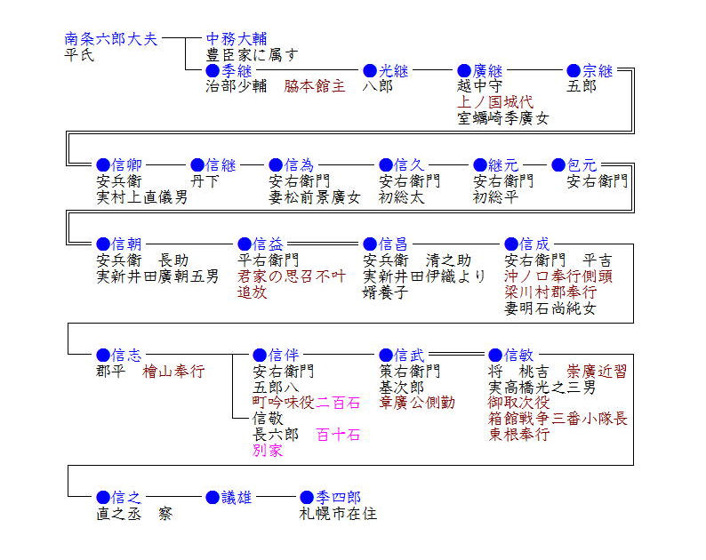 維新期には分家の下国東七郎等が起こした正義隊のクーデターに際して、下国安芸崇教が執政となり、箱館戦争やその後の失地回復戦の指揮を執っています。その後、御子孫は岩内町に移り現在も住んで居られるとのことです。