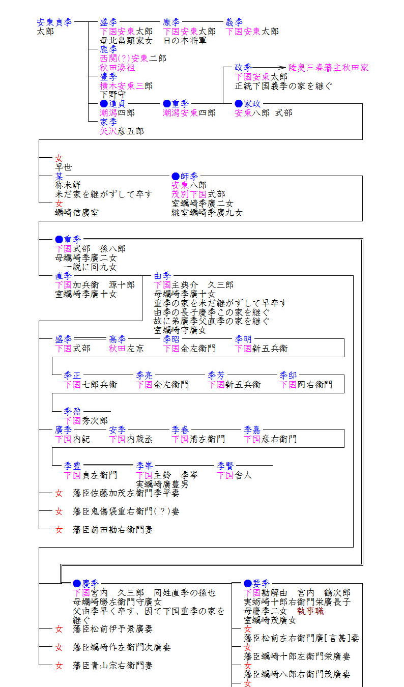 下国家は蠣崎・松前諸家とともに松前藩の家老となりうる寄合席に列した家です。その先祖を遡っていくと、蠣崎家の主家筋にあたる津軽安東家にたどりつきます。