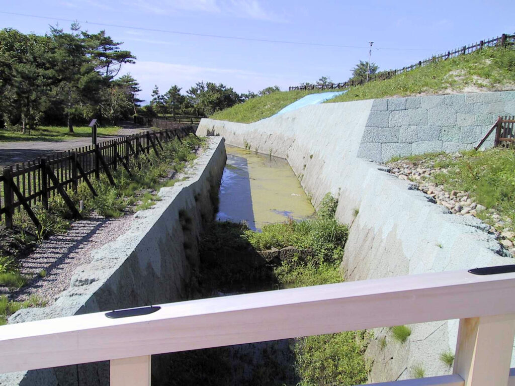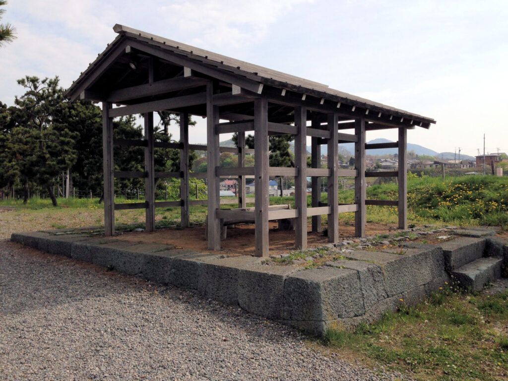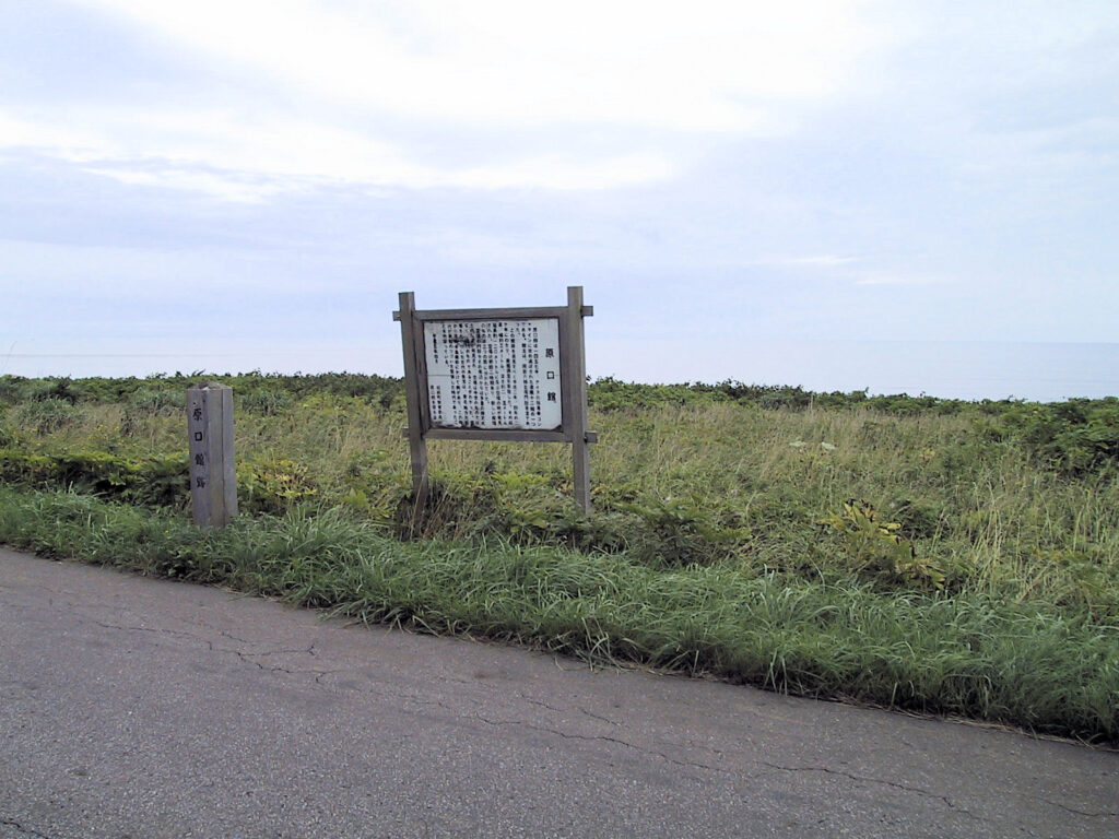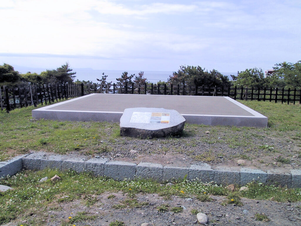 現在その場所には標柱と説明板が立っていますが、日本海を望む高台にあり、草地になっています。