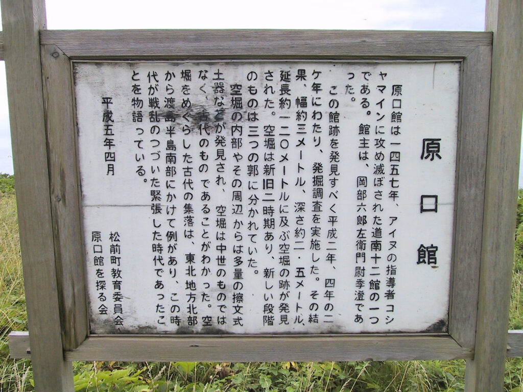 ここは道南十二館の一つといわれ、若狭出身の近藤季常が館主でしたが、コシャマインの戦いの際に陥落したと伝えられています。その後館は再興されたと思われますが、永正12年(1515)蠣崎氏の松前進出に伴い被官化し、その子孫は松前藩士となりました。