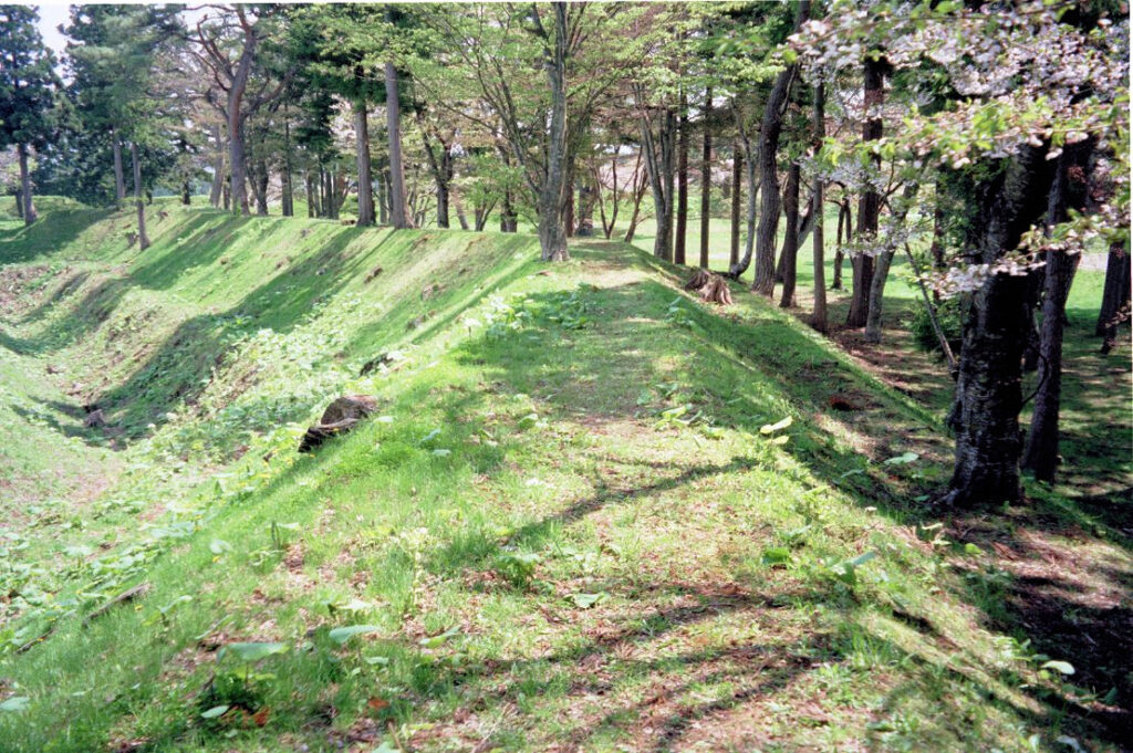 一緒に行った友人も歴史好きなヤツなんですが、陣屋跡よりも桜の美しさに心ひかれていたようです(^^;) やっぱり、この時期に桜の名所に行って桜よりも土塁や空堀の形に心ひかれる私は変なヤツなんでしょうね(^^;) (桜の美しさにも感激しましたけど、その美しさと陣屋跡の土塁などの美しさが重なってさらに綺麗でした) この陣屋は正直言って四稜郭よりは規模も大きいですし、数倍素晴らしいです。是非一度は訪城されることをおすすめします。(1998/5/5)