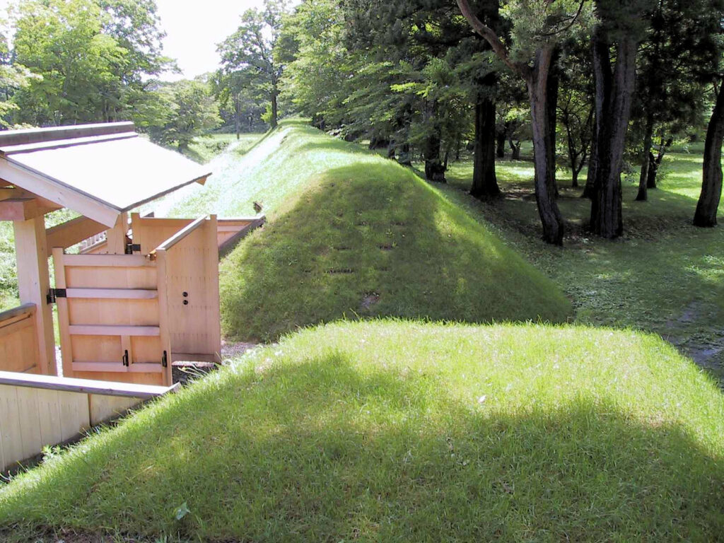 また土塁の高さ・堀の深さは函館の四稜郭などは問題にならず、この陣屋の堅固さを象徴しているかのようです。また土塁の内側には段が作られており、犬走りのように兵士が移動したり、そこから射撃したのでしょう。