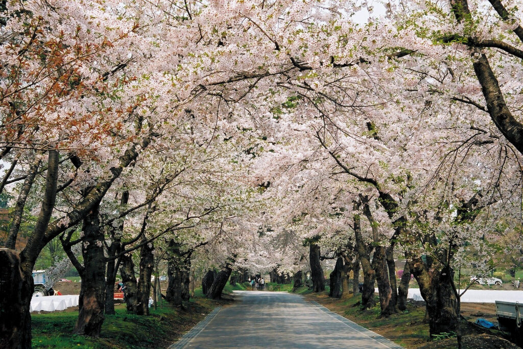 上磯町から大野町へと向かう道から途中左に入ると「桜のトンネル」があります。道路の両側に桜並木が続き、その桜が道路の上に被さってきてトンネルとなっているんです。(綺麗でした(^^)) そしてしばらくすると左右に大きな駐車場があり陣屋跡が前方に見えてきます。