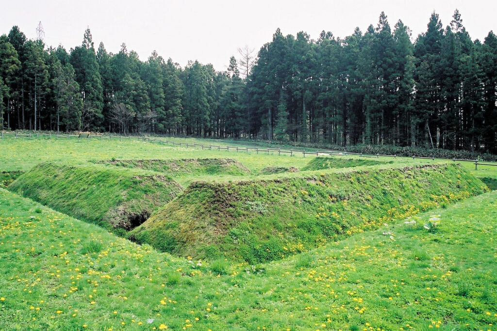 この原口館は河野常吉氏の報告によると、第一館址と第二館址があり、土塁・空堀の一部も残っていたそうで、戦後早い時期まであったとのことですが、その後埋められ行方不明になっていました。平成2・4年に行われた発掘調査によって幅約3m、深さ約2.5m、延長約120mに及ぶ空堀の跡が発見され、出土した遺物からこの空堀は中世のものではなく古代のものであることがわかりました。