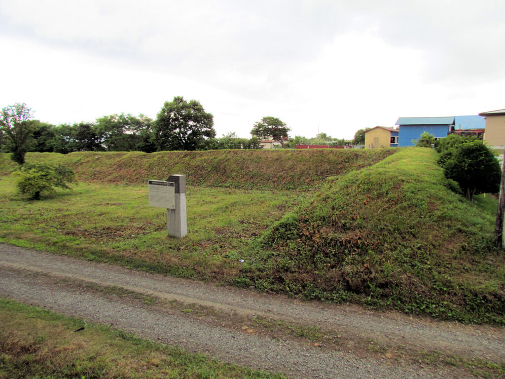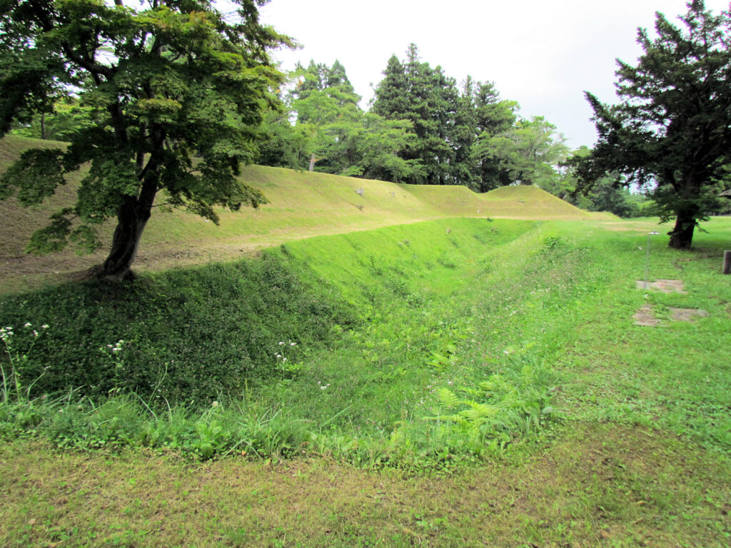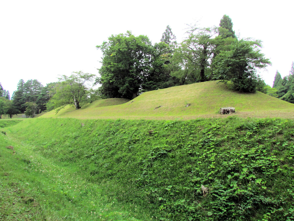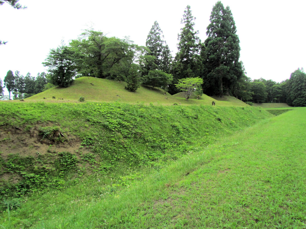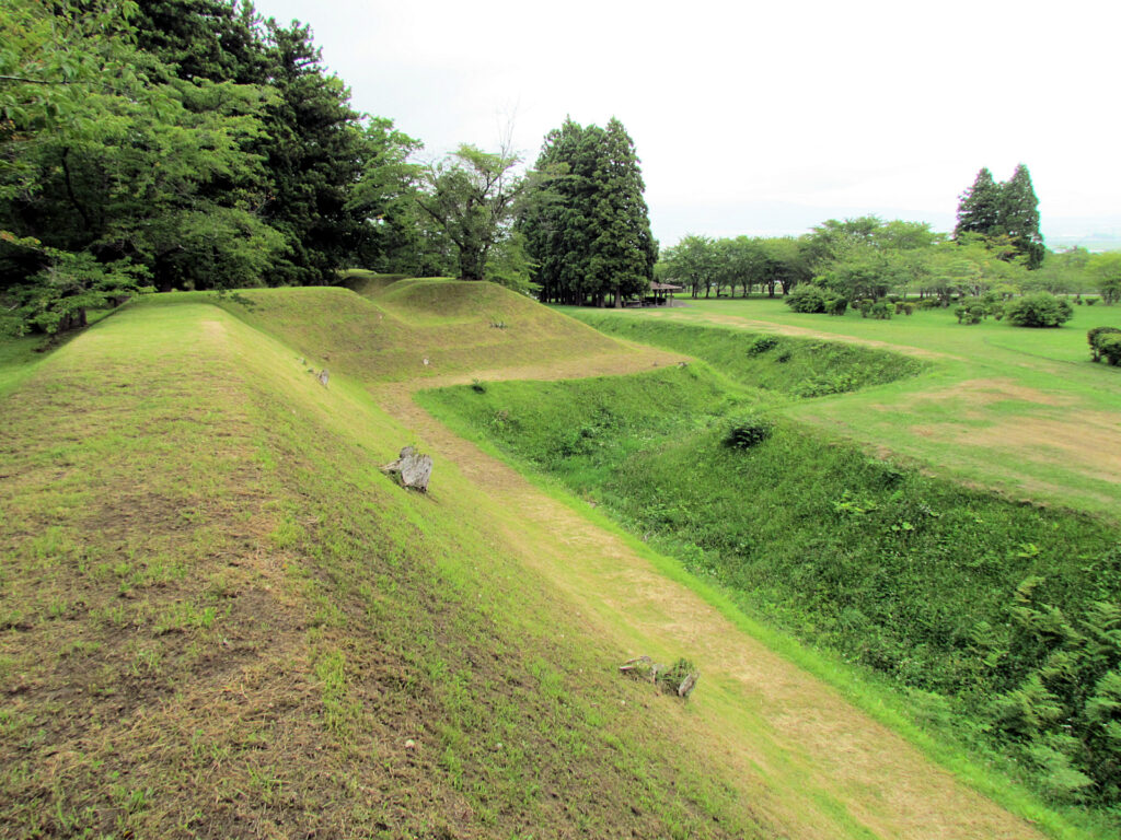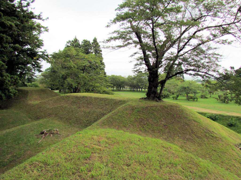 ここは二度目の訪問ですが、方形の土塁がきれいに残っています。石碑や説明板もありますし、丁度草刈をした直後だったのか、土塁の形がきれいに見えました。本当ならじっくり写真を撮りたいところでしたが、道の駅の閉館時間が迫っていたので、大急ぎで移動しました。(2012/8/6)