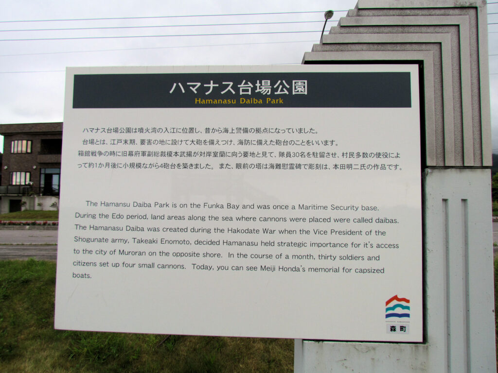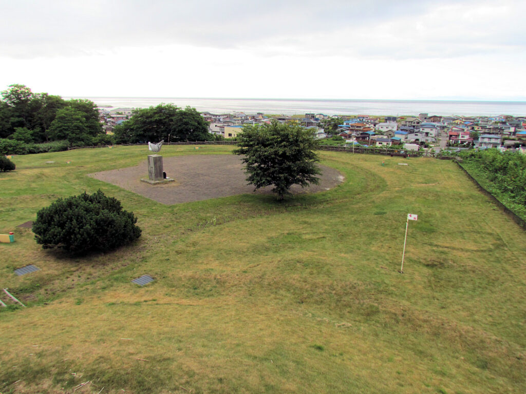 美呂泊チャシの次は彦澗台場です。ここは現在「ハマナス台場公園」となっています。駐車場もあり、訪れやすくなっていますが、削平され普通の公園となっており、「ハマナス台場公園」の説明板のみが、かつてここが台場であったことを示しています。眺めは非常に良いところです。
