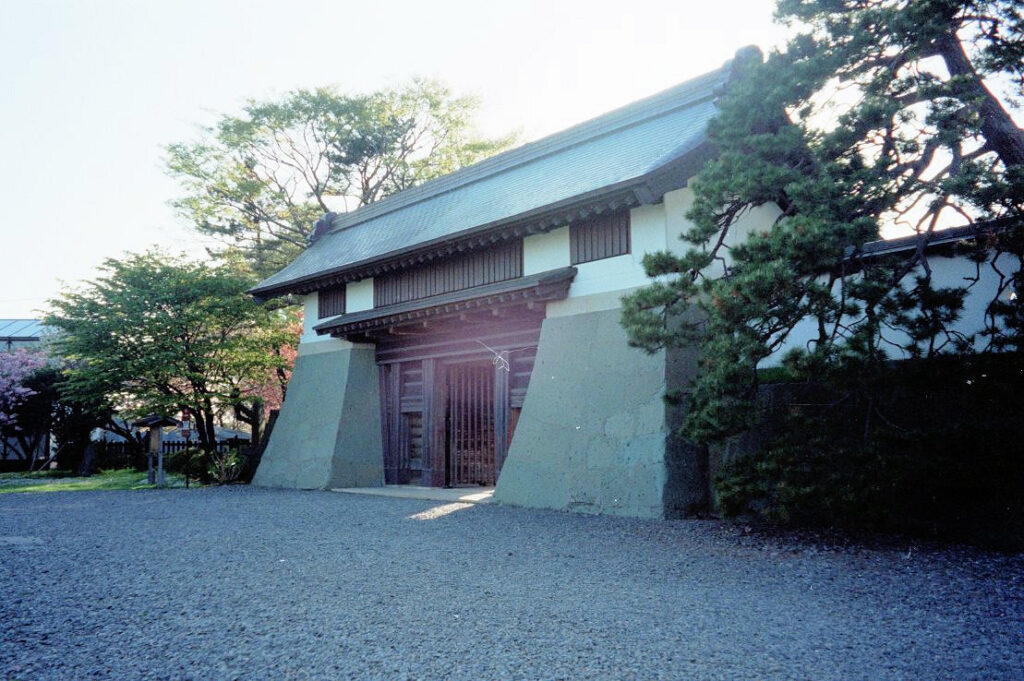 松前城の本丸表御殿は廃城後、松城学校の校舎として使用されていましたが、のち校舎新築のため撤去され、玄関のみが残されて校舎玄関として使用されていました。その後、松城小学校の移転に伴い保管されていましたが、どうやら昨年からの整備事業によって修復されたようです。この表御殿は伏見城の一部を移したと伝えられていますが、確かにこの玄関にはそうした雰囲気が感じられます。ただし、いかにも北海道らしくトタン屋根になっているのがご愛敬ですが(^^;)