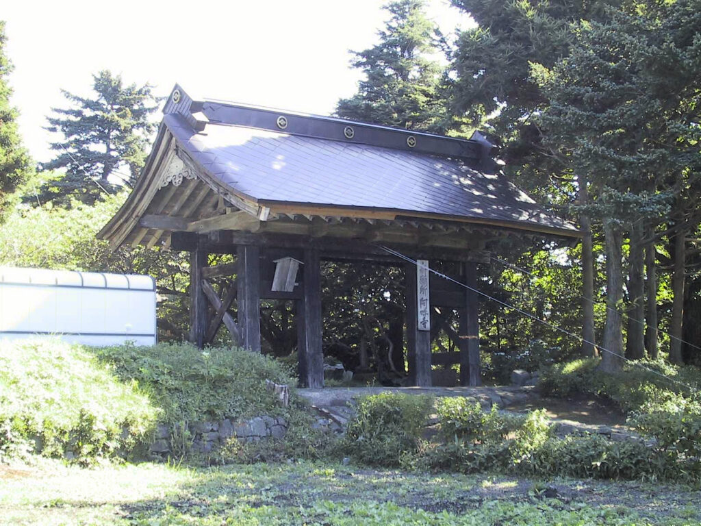 裏参道側の土塁の上から下をのぞいてみると、かなりの高さでこの館の守りの堅さが実感できました。館跡とは関係ありませんが、天満宮の表の鳥居には天保年間の、拝殿の裏にある古い本殿(?)の鳥居には文政年間の年代が刻まれ、道南の歴史の古さを示していました。(2001/06/16)